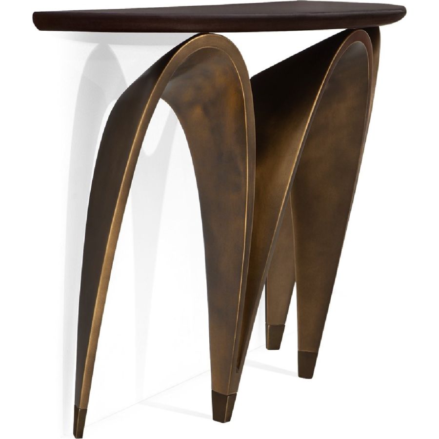 Inspired by the waves of the extraordinary City of Arts and Sciences by Santiago Calatrava, in the Spanish city of Valencia, this console table features a semi-oval wooden top on a hand carved base formed of wavy arches. Just spectacular!