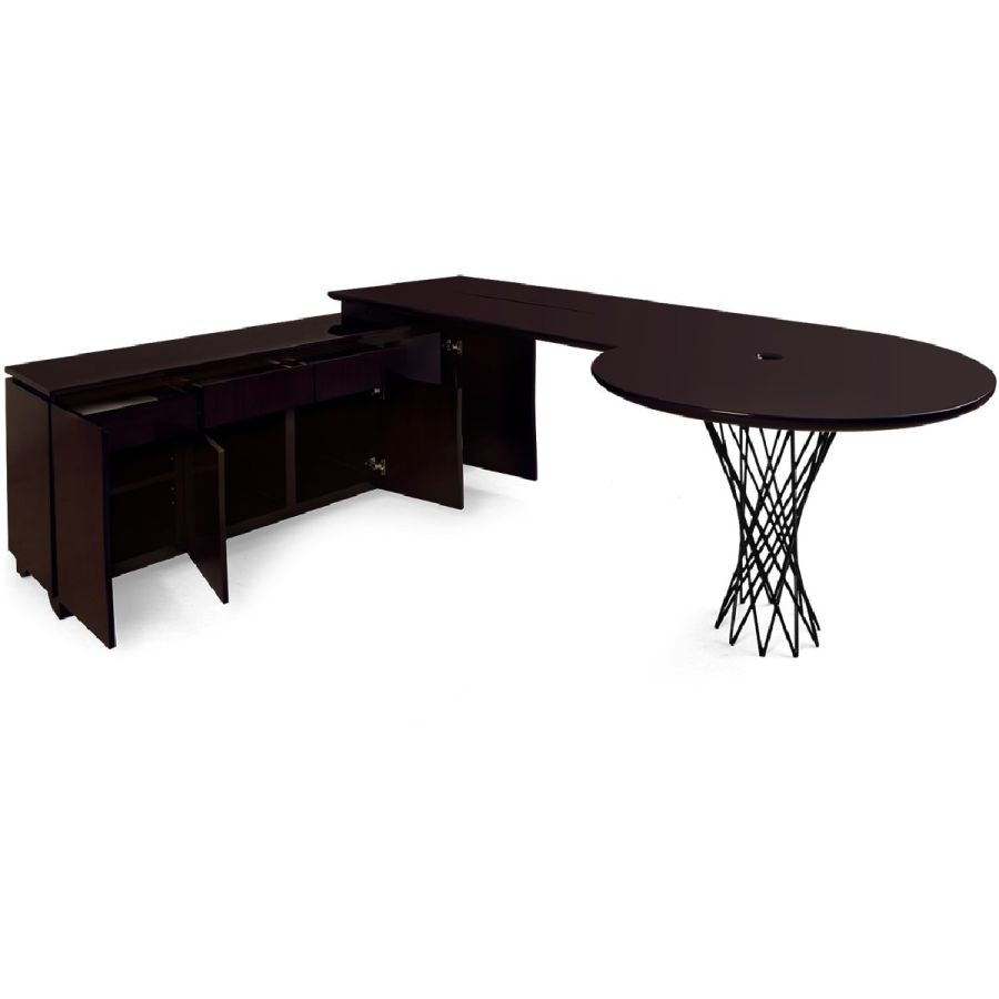 This beautifully crafted L-shaped bureau was designed by Christopher for his home study featuring storage cupboards and drawers, and his signature silk-cut through the desk top.