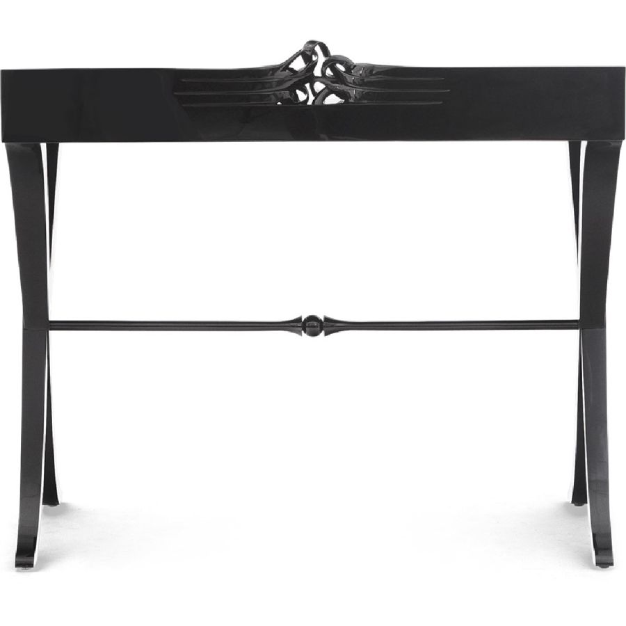 This exquisite piece is at home as a tray table, writing desk or dressing table. The intricately carved 'knot' is the work of Christopher Guys most accomplished carvers.