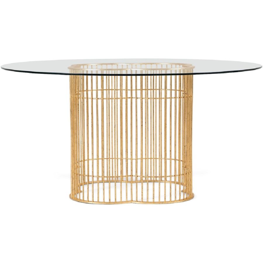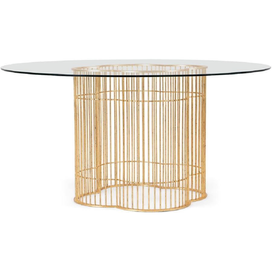 Forged Iron base. Toughened tempered clear glass top. 6-8 Seater Table. For residential use only. Commercial use is classified as Special Order Design (SOD), and alternative materials may be required. Contact us for details.