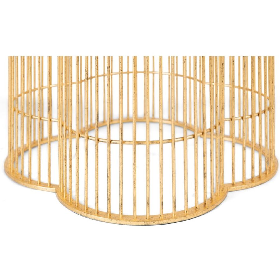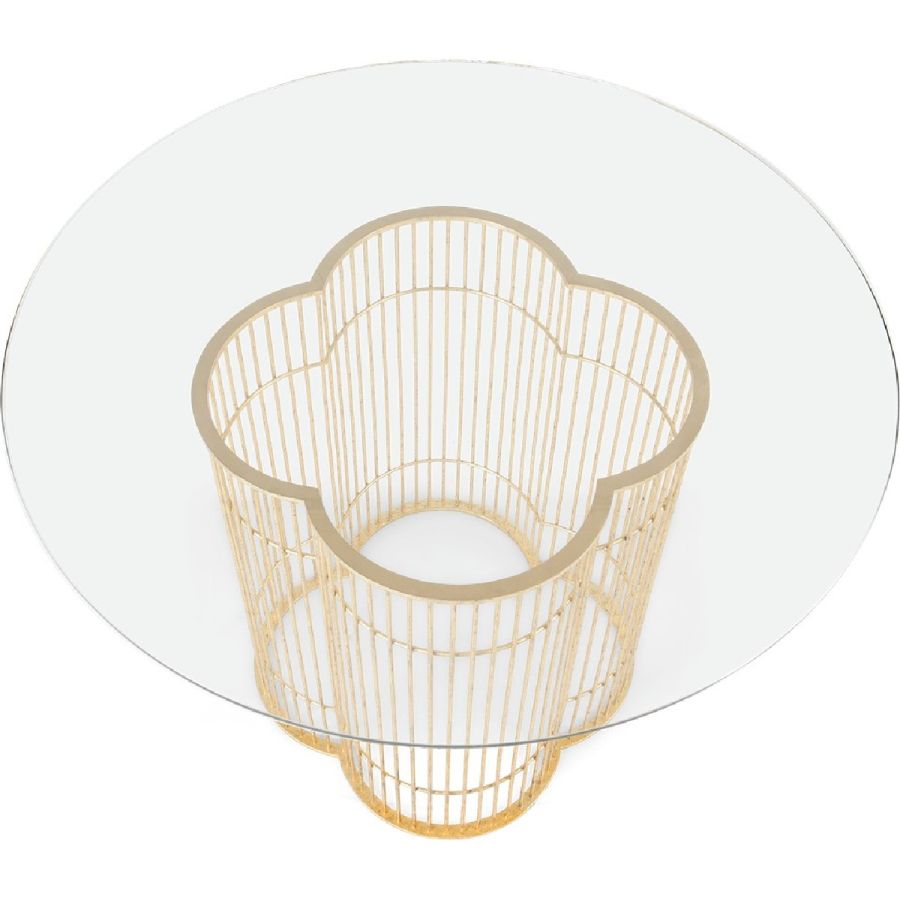 A stunning hand-wrought base is topped with circular tempered glass. Distinctively individual and suitable for a range of period and contemporary settings.
