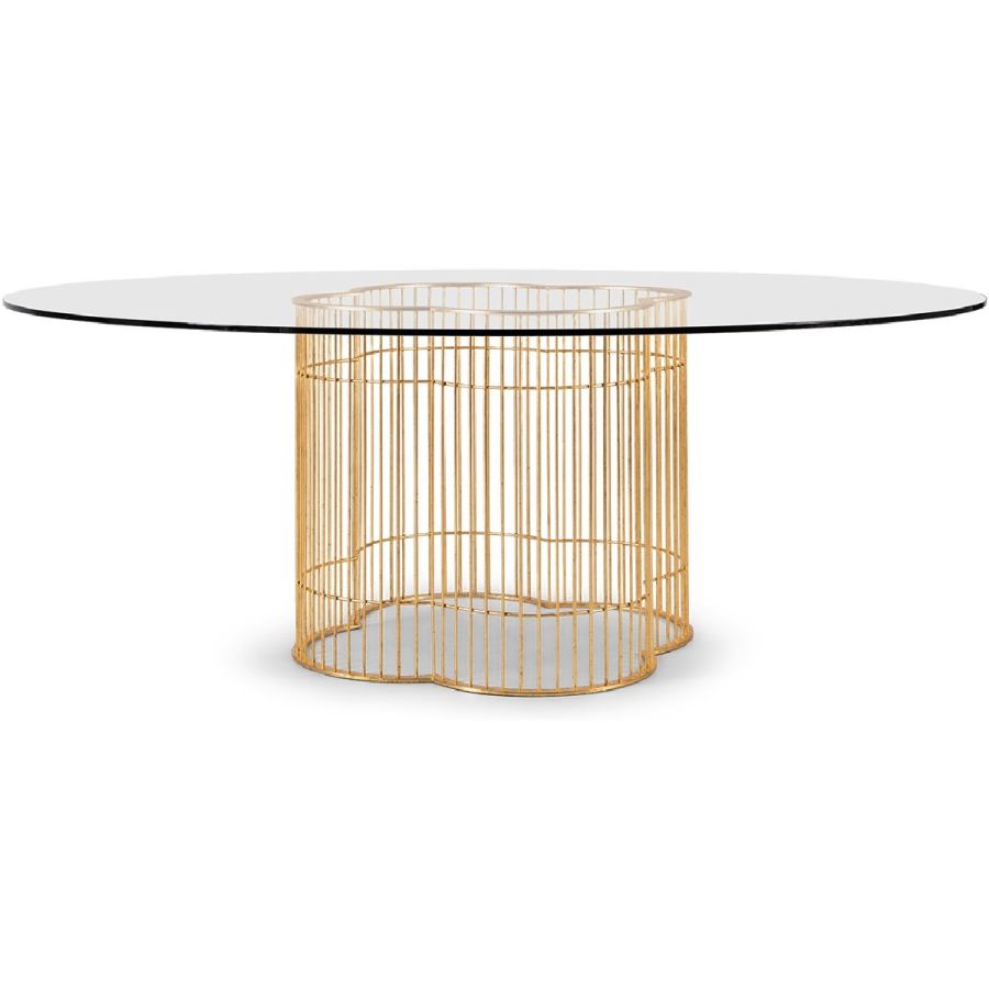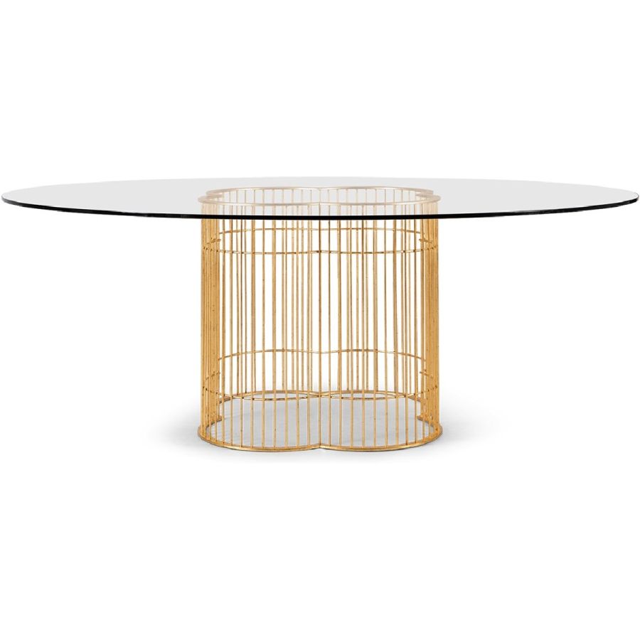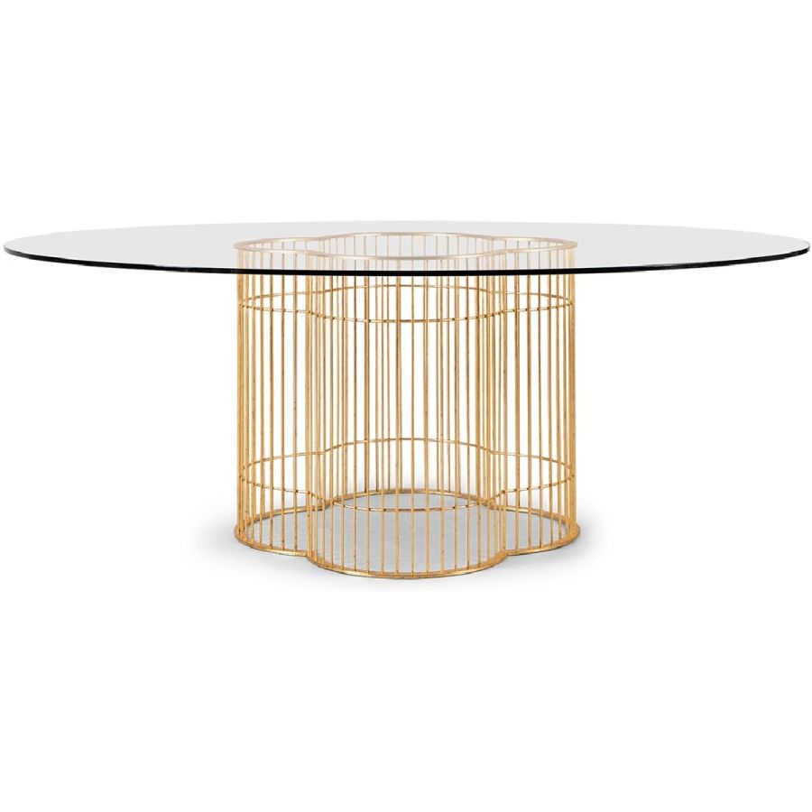Forged Iron base. Toughened tempered clear glass top. 8-10 Seater Table. For residential use only. Commercial use is classified as Special Order Design (SOD), and alternative materials may be required. Contact us for details.