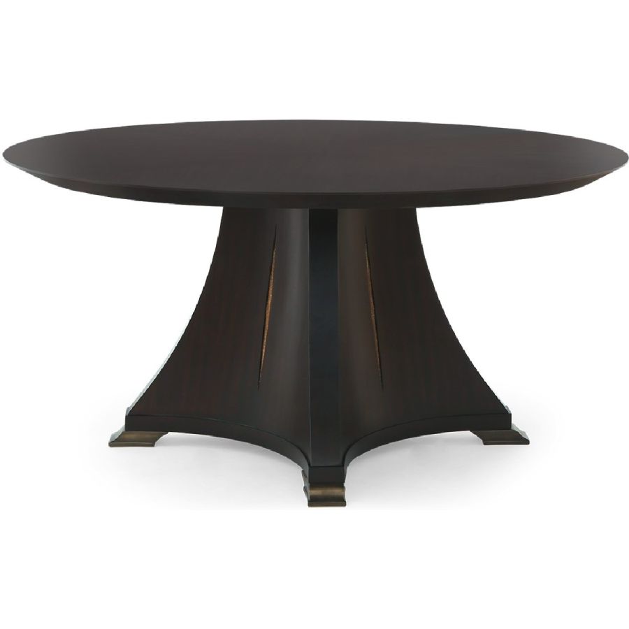 The Silk-cut once again makes an appearance on this fabulous table, this time on the elegant tapered pedestal featuring 4 distinctive brass feet. With three sizes to choose from, it is ideal as a center, breakfast or dining table.