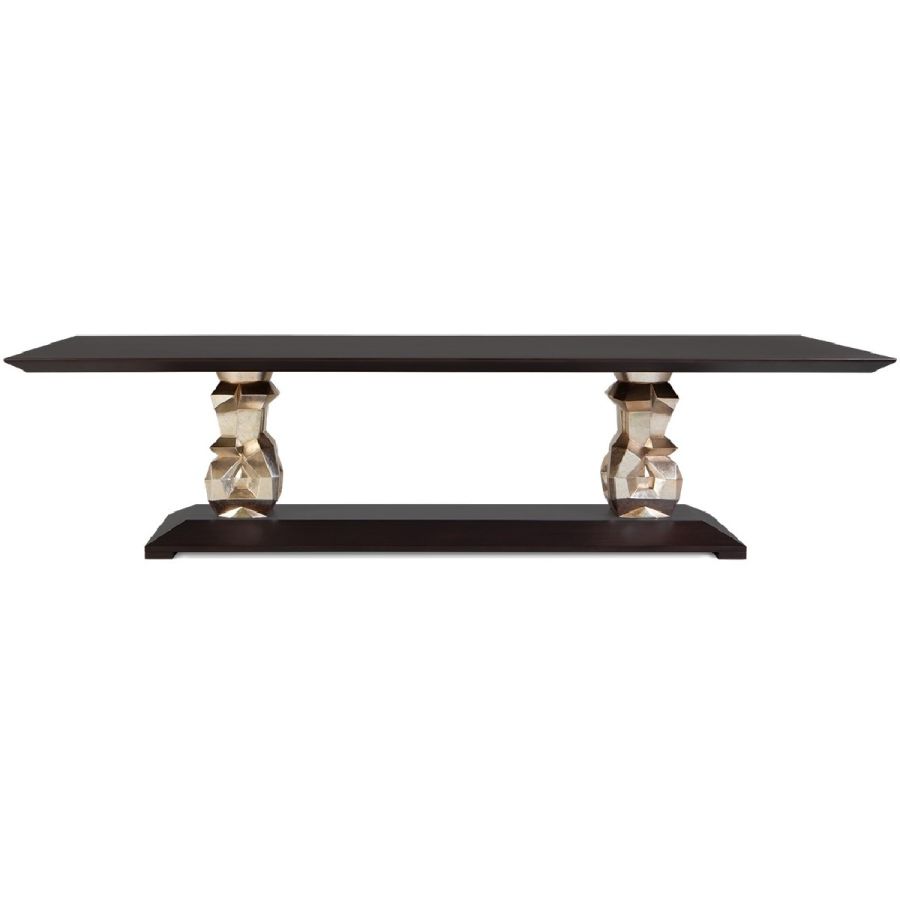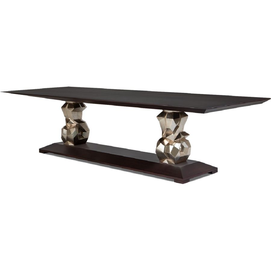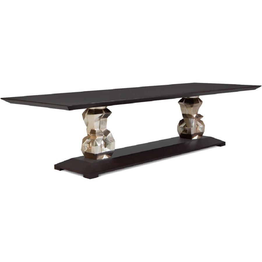 A captivating dining table design that adds practicality to glamour for a truly wonderful dining experience. The hand-sculptured mahogany bases support a veneered cantilevered table top.