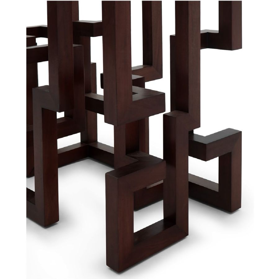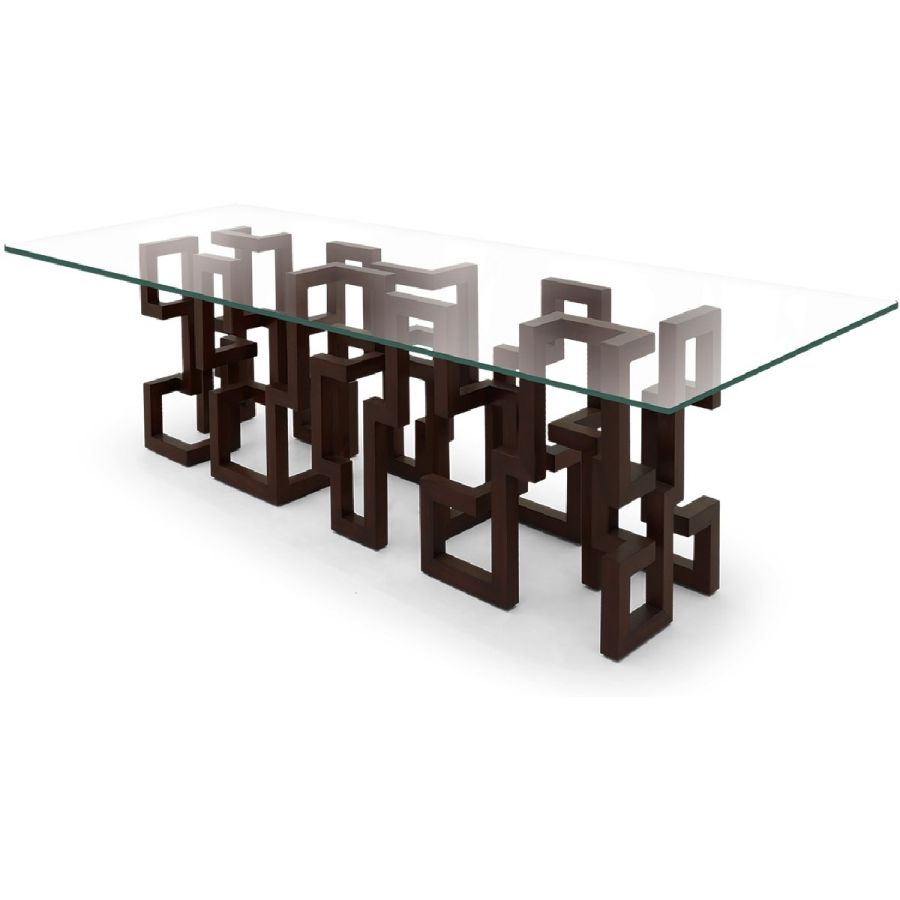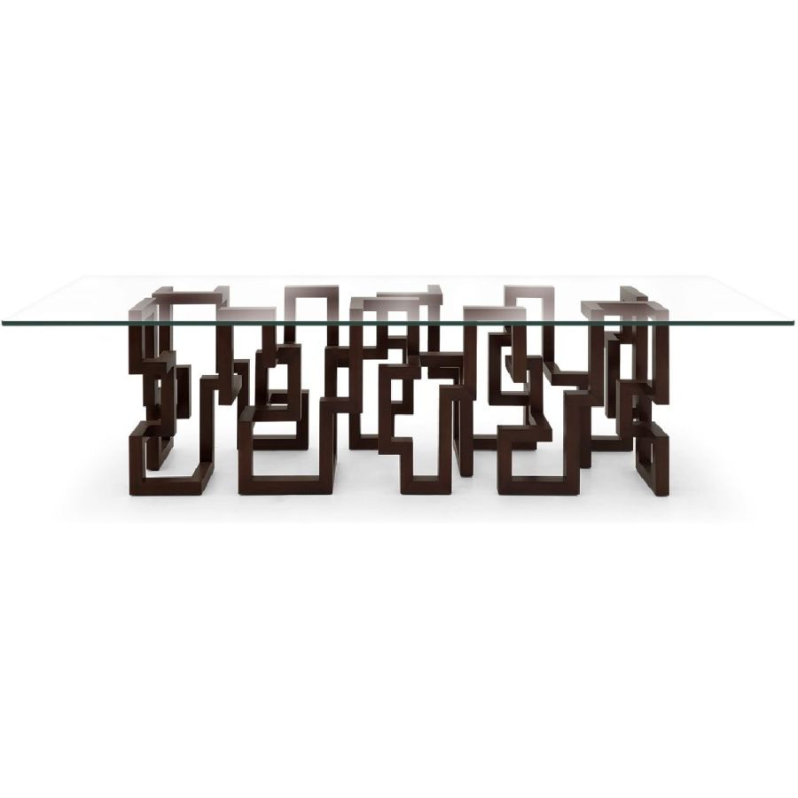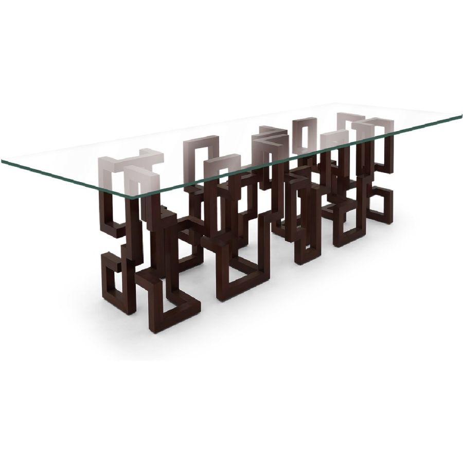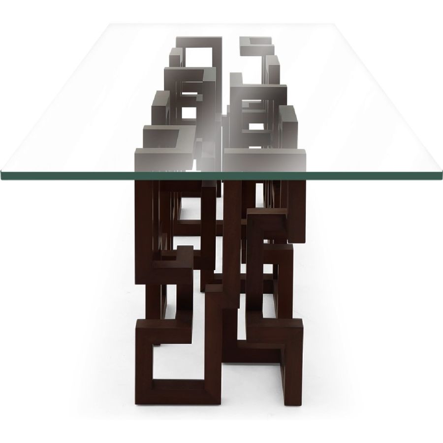 With a spectacular and complex Greek key based design, hand carved from solid wood in the CG ateliers by master craftsmen, this dining table is topped with clear glass to allow the beauty of the piece to be seen from all angles.