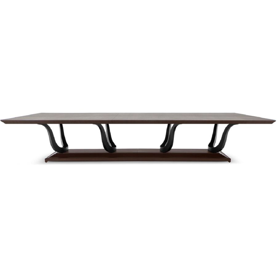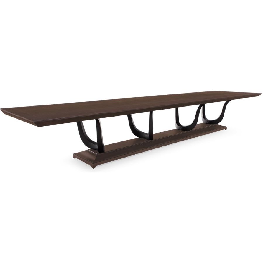 Certified Mahogany hardwood. Hand-Carved. Veneered Mahogany top. Inlaid veneer top. Two piece section table top for easy building access. 12-14 Seater Table. Available in a selection of outstanding Standard and Premium finishes. For residential use only. Commercial use is classified as Special Order Design (SOD), and alternative materials may be required. Contact us for details.