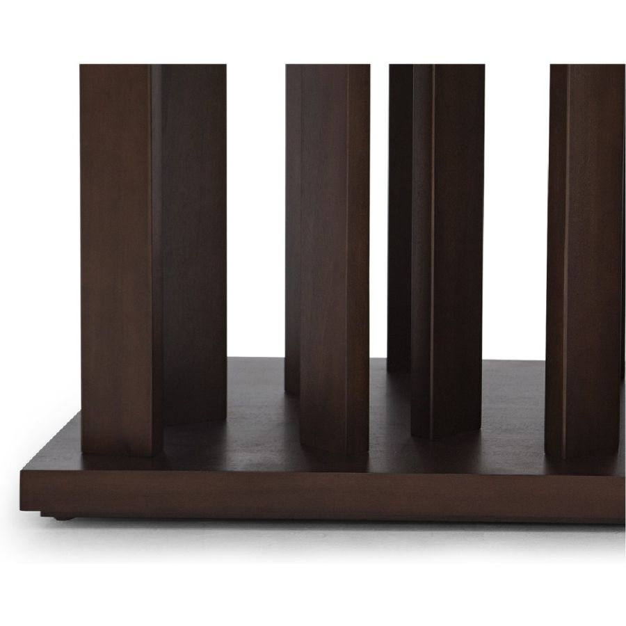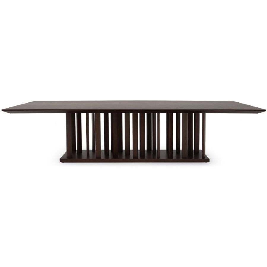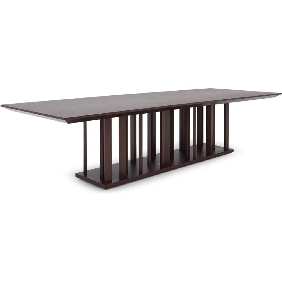An exceptional grand dining table featuring a base with 27 stilts supporting a sleek angular rectangular top.
