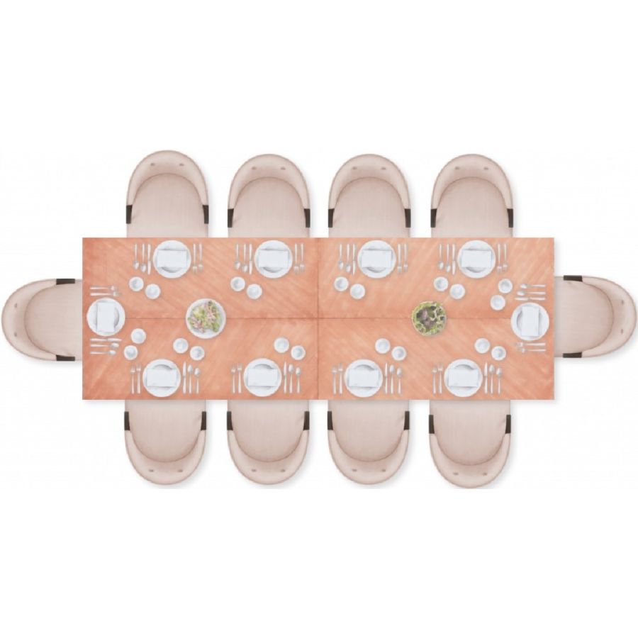 Certified Mahogany hardwood. Veneered Mahogany top. 8-10 Seater Table. Obtainable in an array of outstanding finishes. For residential use only. Commercial use is classified as Special Order Design (SOD), and alternative materials may be required. Contact us for details.