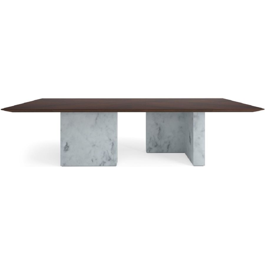 Selection of wood veneer tops. Marble facades with hollowed engineered wood construction. 8-10 Seater Table. For residential use only. Commercial use is classified as Special Order Design (SOD), and alternative materials may be required. Contact us for details.