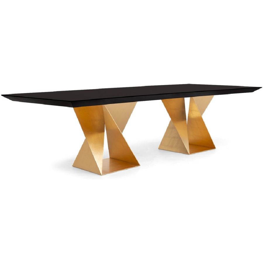 Certified Mahogany hardwood. Forged Iron base. Veneered Mahogany top. 8-10 Seater Table. Selection of remarkable finishes are available. For residential use only. Commercial use is classified as Special Order Design (SOD), and alternative materials may be required. Contact us for details.