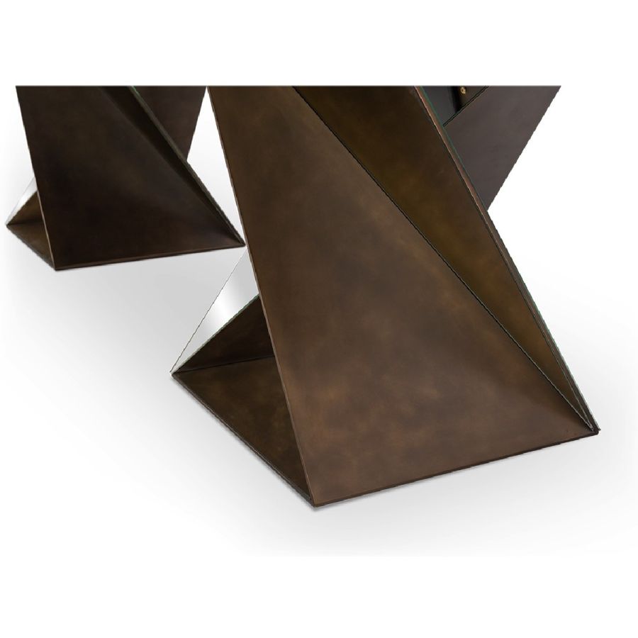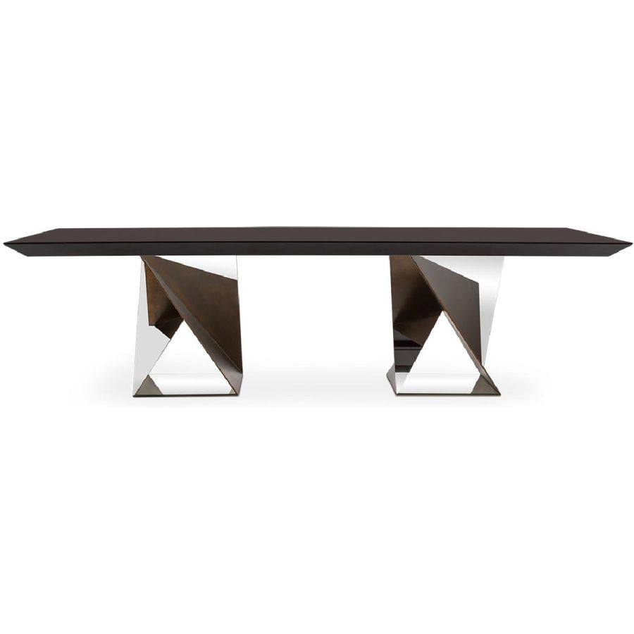 Named after the architectural studio which designs buildings based on the Japanese art of folded paper craft, origami, Morison is a striking dining table featuring a wooden top on a base of two metal twisted prism supports clad in mirrors. The perfect piece to bring drama and a contemporary feel to a dining setting.