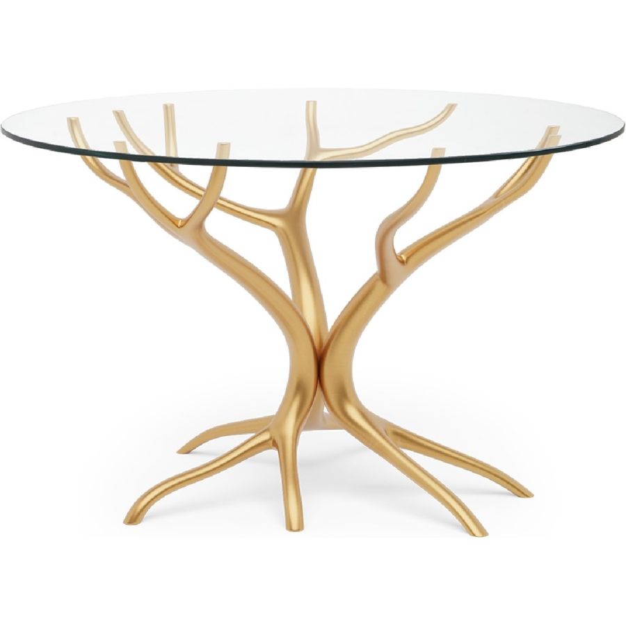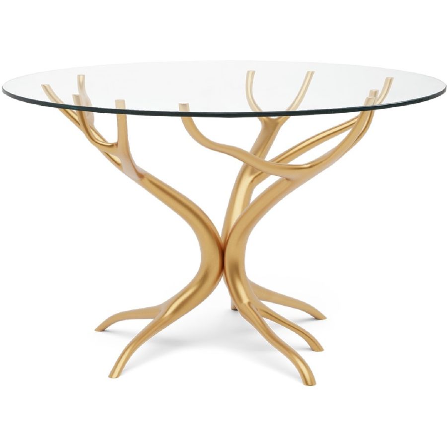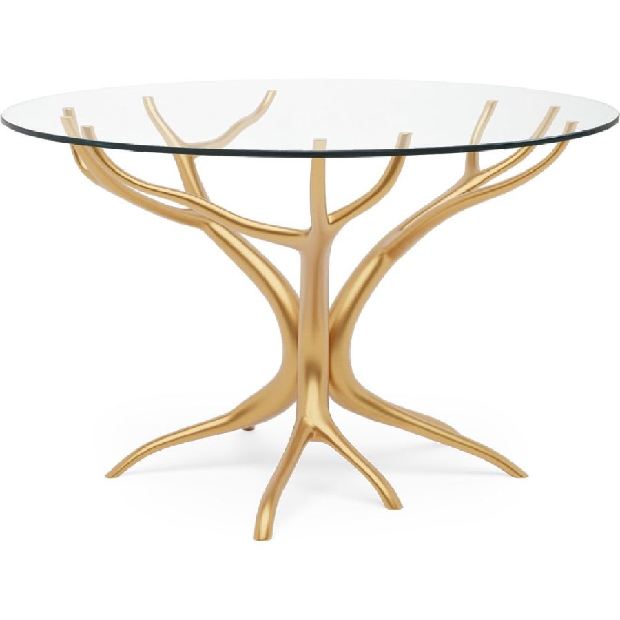 With gracefully stretching hand carved wood ‘branches’, this exquisite center or dining table is topped with clear tempered glass to show the tree-style pattern below to best effect. A truly beautiful statement piece for any dining or living room setting. Also available as a side table (76-0607).