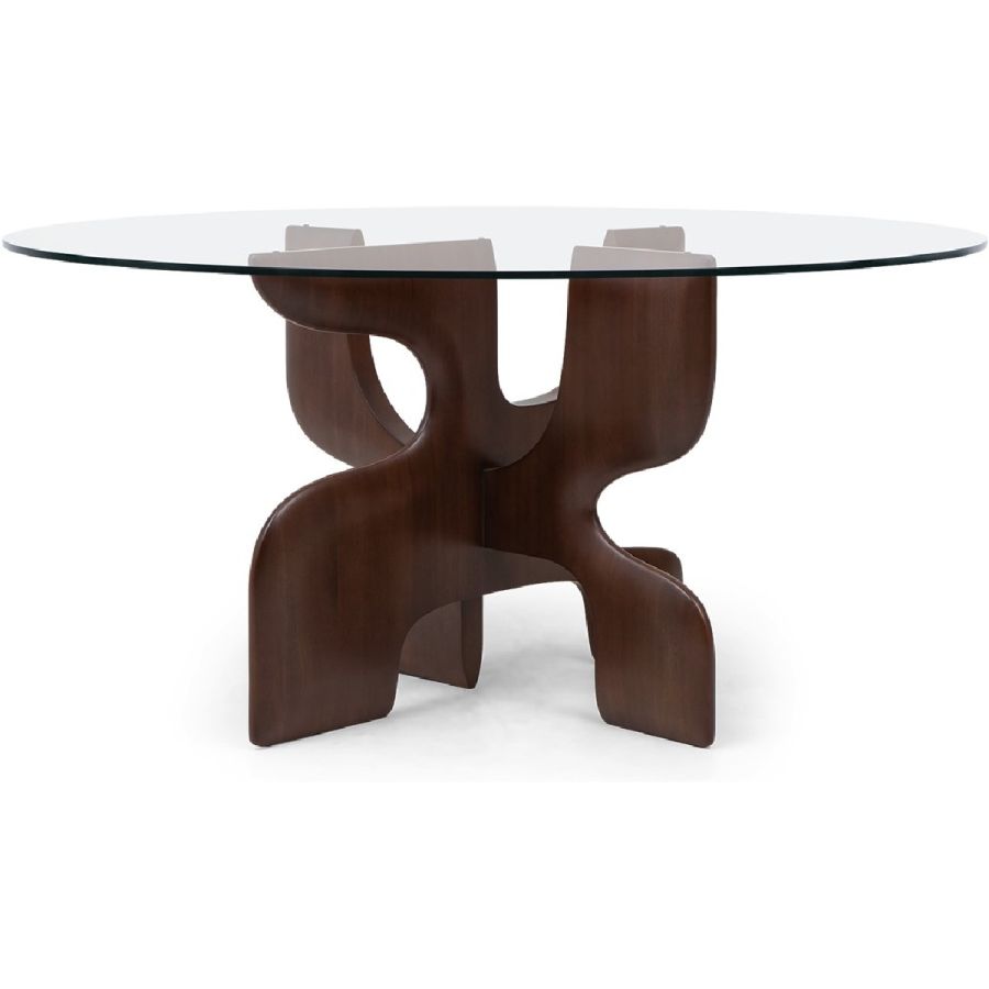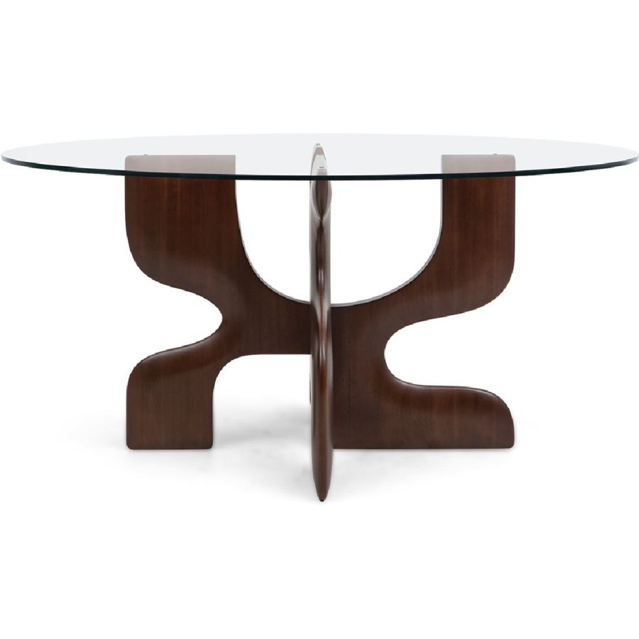 Certified Mahogany base. Toughened tempered clear glass top. 4-6 Seater Table. Selection of remarkable finishes are available. For residential use only. Commercial use is classified as Special Order Design (SOD), and alternative materials may be required. Contact us for details.
