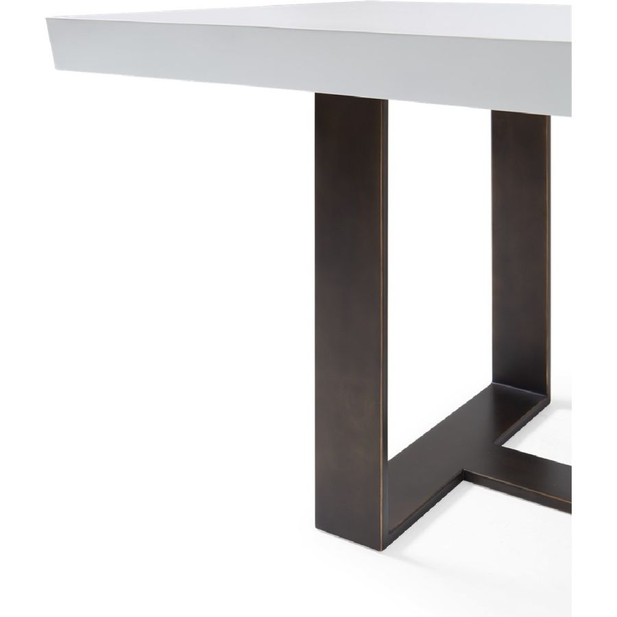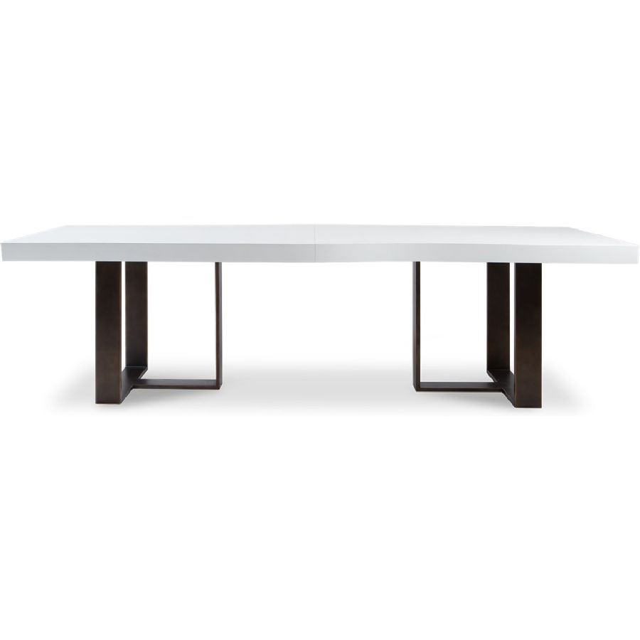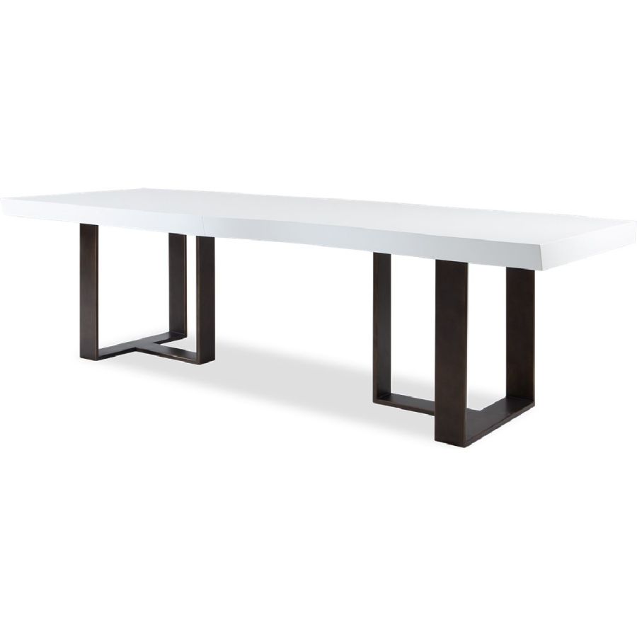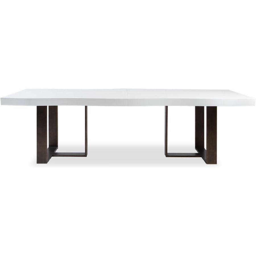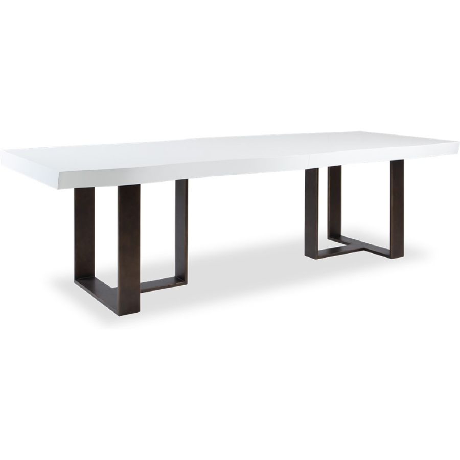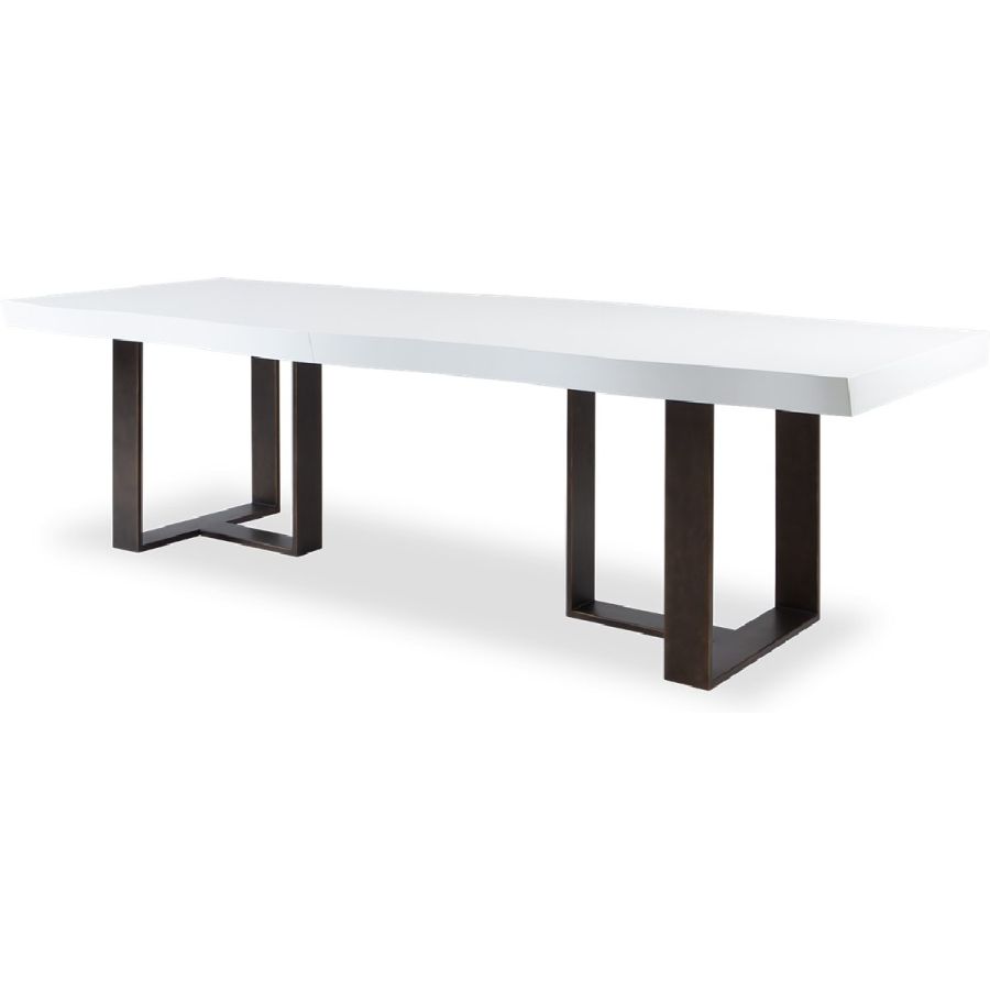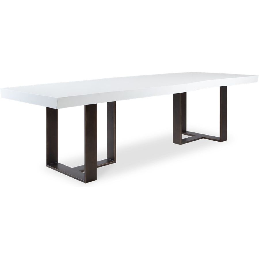 Certified Mahogany hardwood. Forged Iron base. Veneered Mahogany top. 8-10 Seater Table. Selection of remarkable finishes are available. For residential use only. Commercial use is classified as Special Order Design (SOD), and alternative materials may be required. Contact us for details.