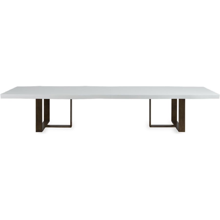 Certified Mahogany hardwood. Forged Iron base. Veneered Mahogany top. Two piece section table top for easy building access. 10-12 Seater Table. Selection of remarkable finishes are available. For residential use only. Commercial use is classified as Special Order Design (SOD), and alternative materials may be required. Contact us for details.