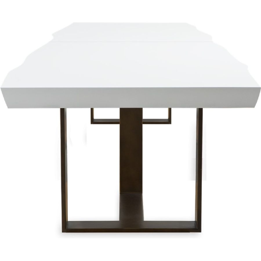 This highly impressive dining table, mimics the sawn plank of an oak tree with natural uneven edges. The base consists of two bronzed steel supports.