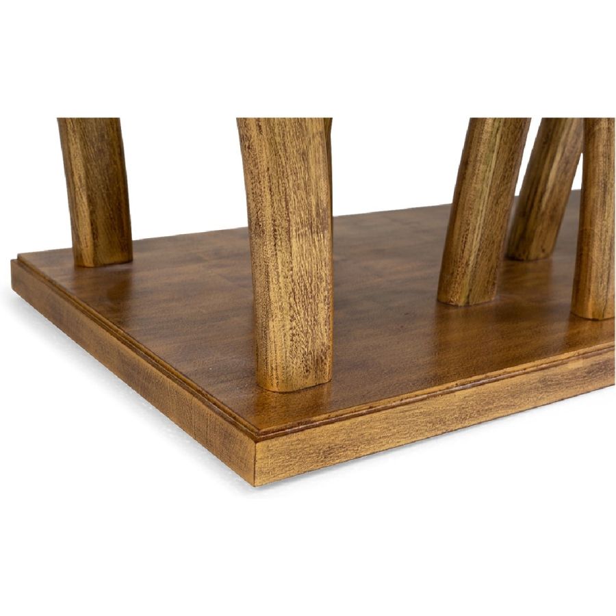 A simply fabulous dining table, with veneered top supported by a series of interwoven mahogany Chris-cross legs.