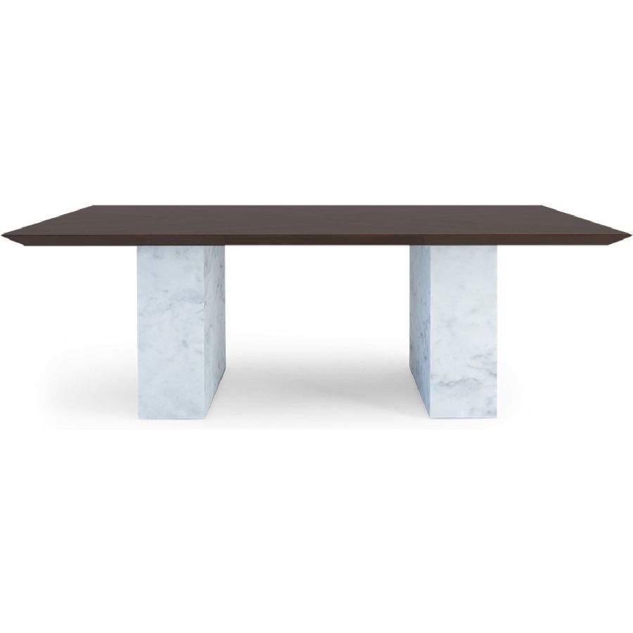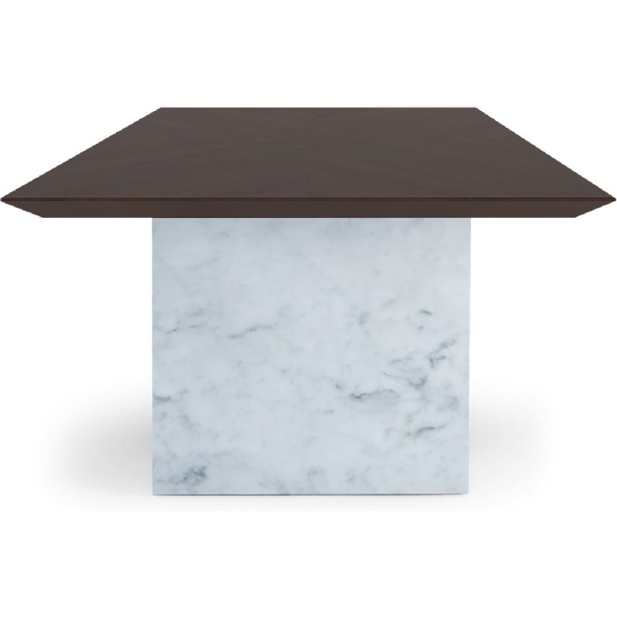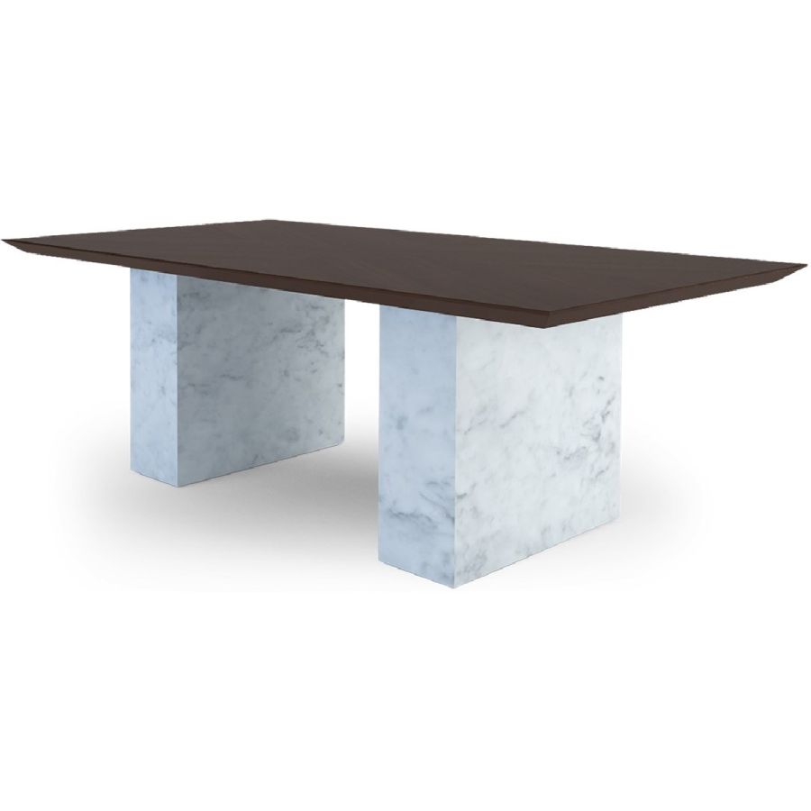 Bring elegance with edge to any dining setting. With smooth slabs of white Carrara marble as bases and a handmade rectangular wood top, this spectacular dining table is a real showstopper!