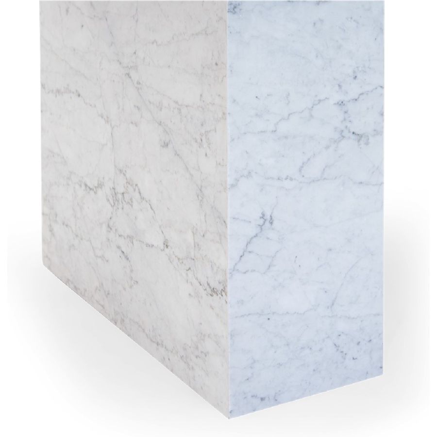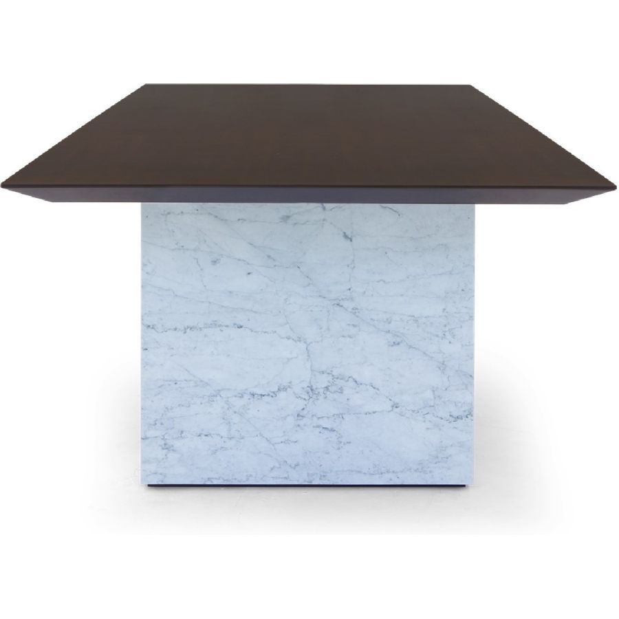 Bring elegance with edge to any dining setting. With smooth slabs of white Carrara marble as bases and a handmade rectangular wood top, this spectacular dining table is a real showstopper!