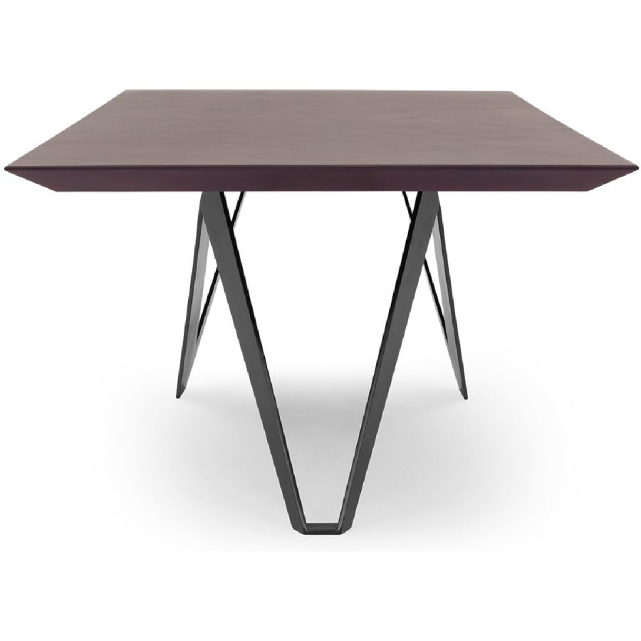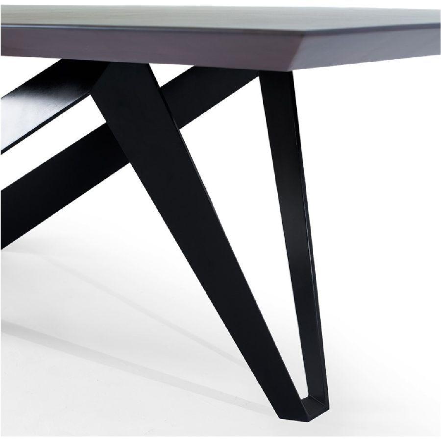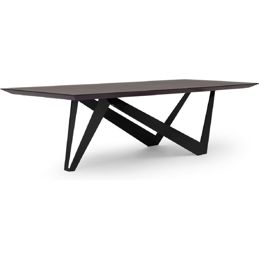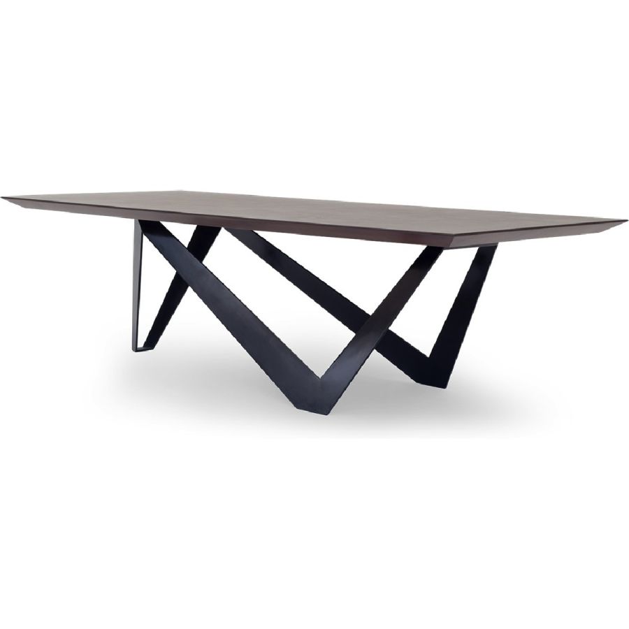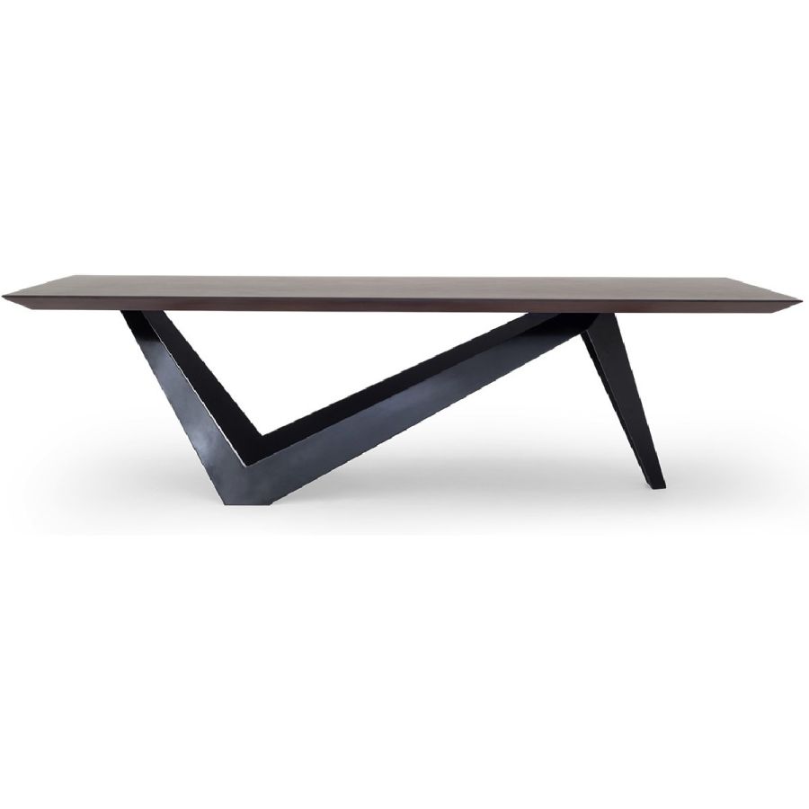 Inspired by the majestic architectural forms of visionary architect Santiago Calatrava, this dining table is a masterpiece of form and function. Zig-zag legs form a kite shaped base in forged iron, which is crowned by a hand carved wood top. Spectacular!