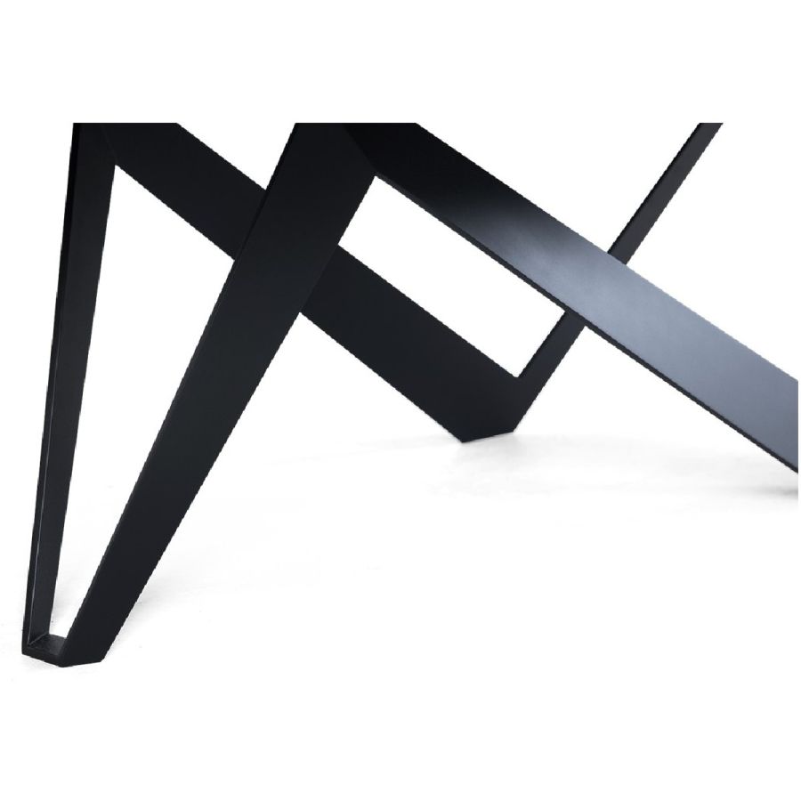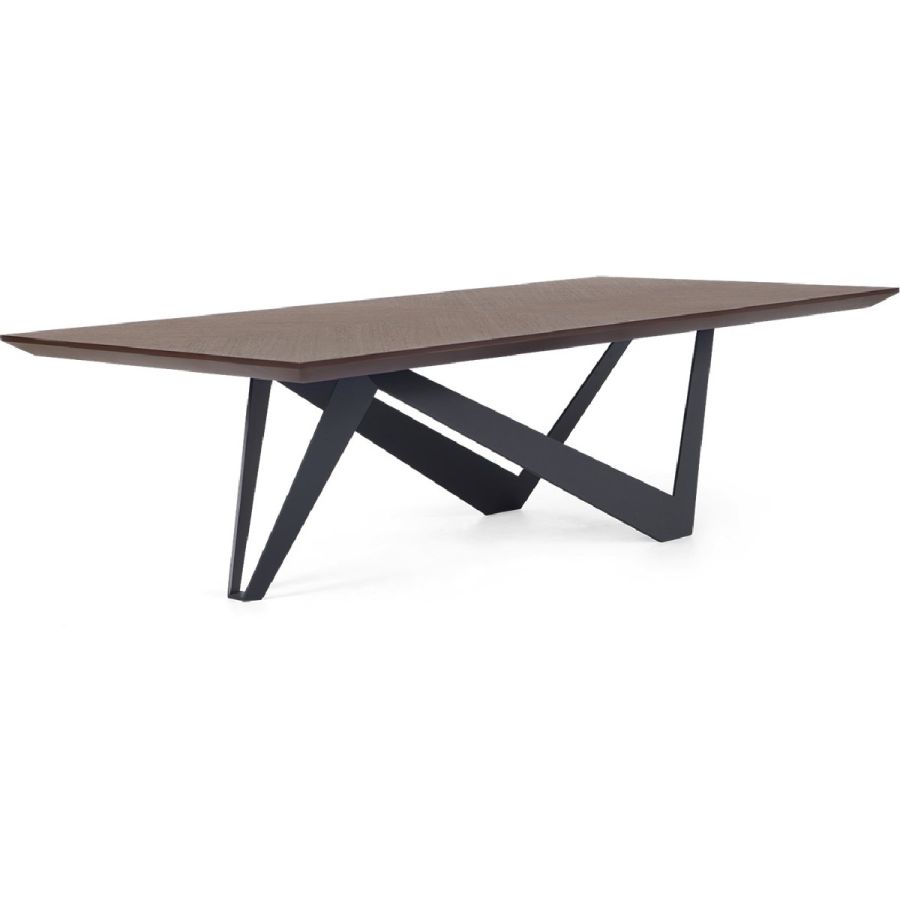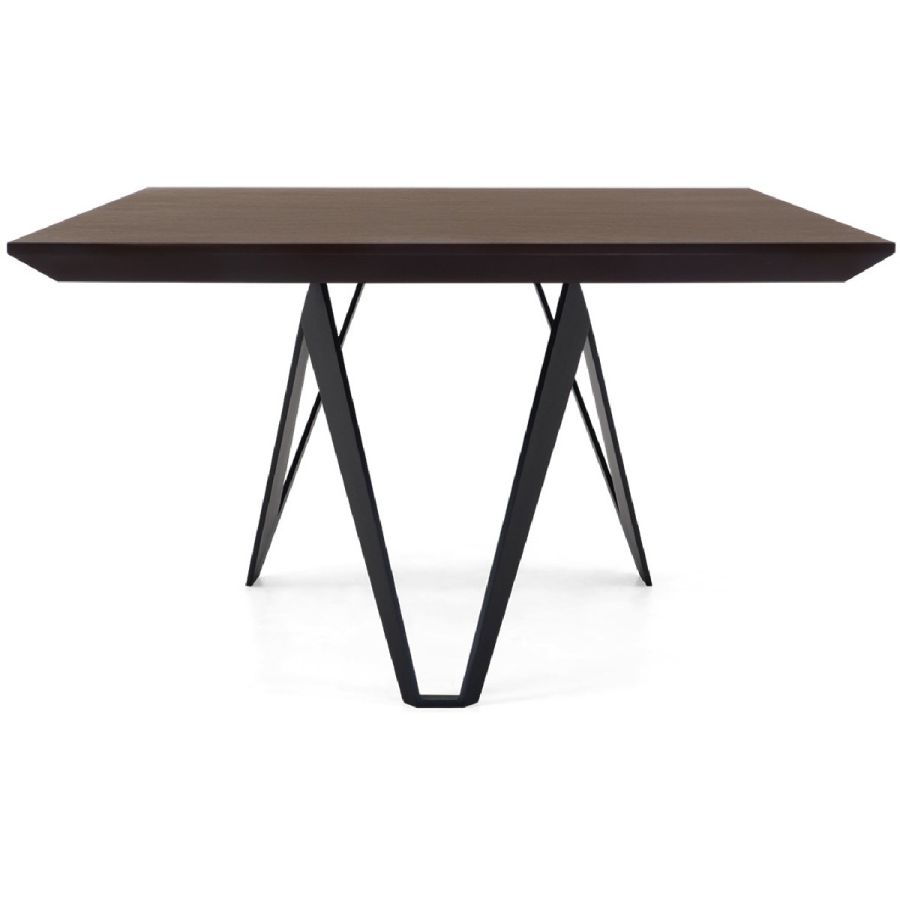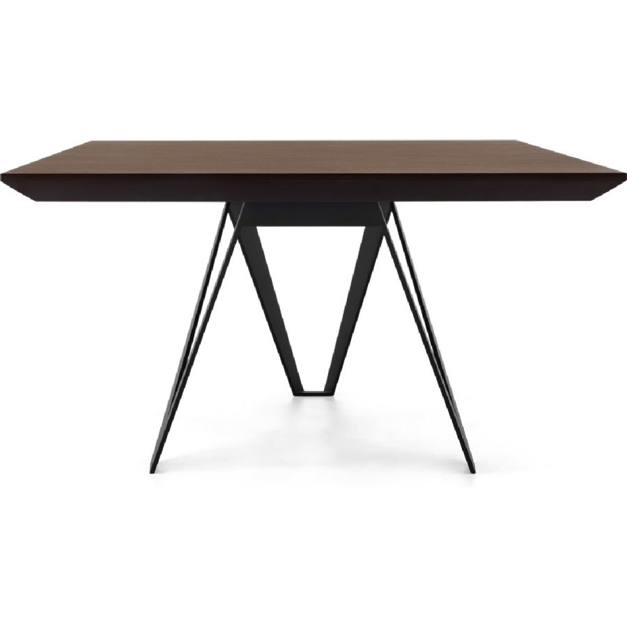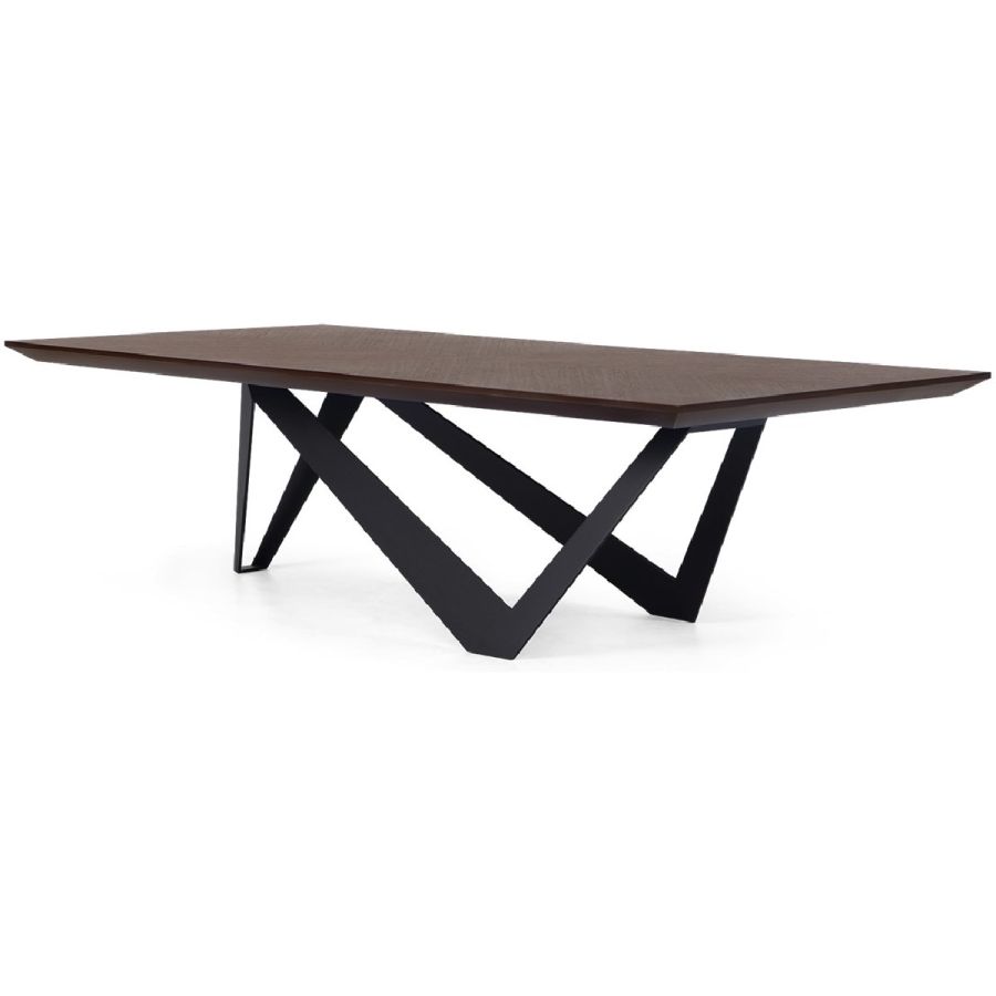 Inspired by the majestic architectural forms of visionary architect Santiago Calatrava, this coffee table is a masterpiece of form and function. Zig-zag legs form a kite shaped base in forged iron, which is crowned by a hand carved wood top.