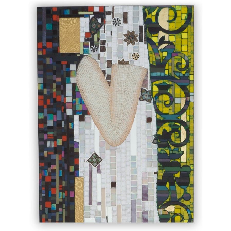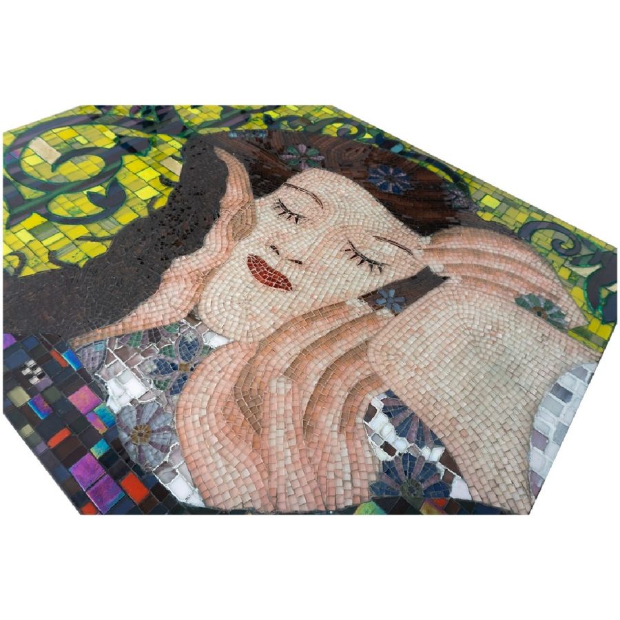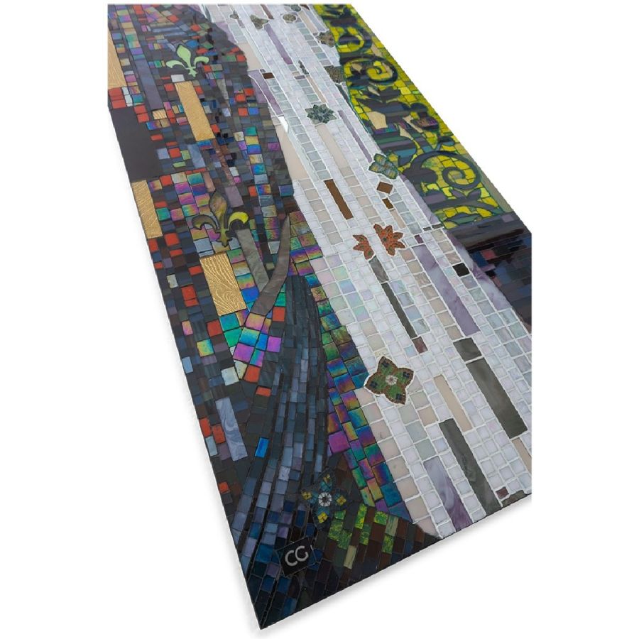 Wall mounted French cleat hanging system. Mosaic inlay of the highest quality, comprising of thousands of hand-cut and individually colored glass pieces.