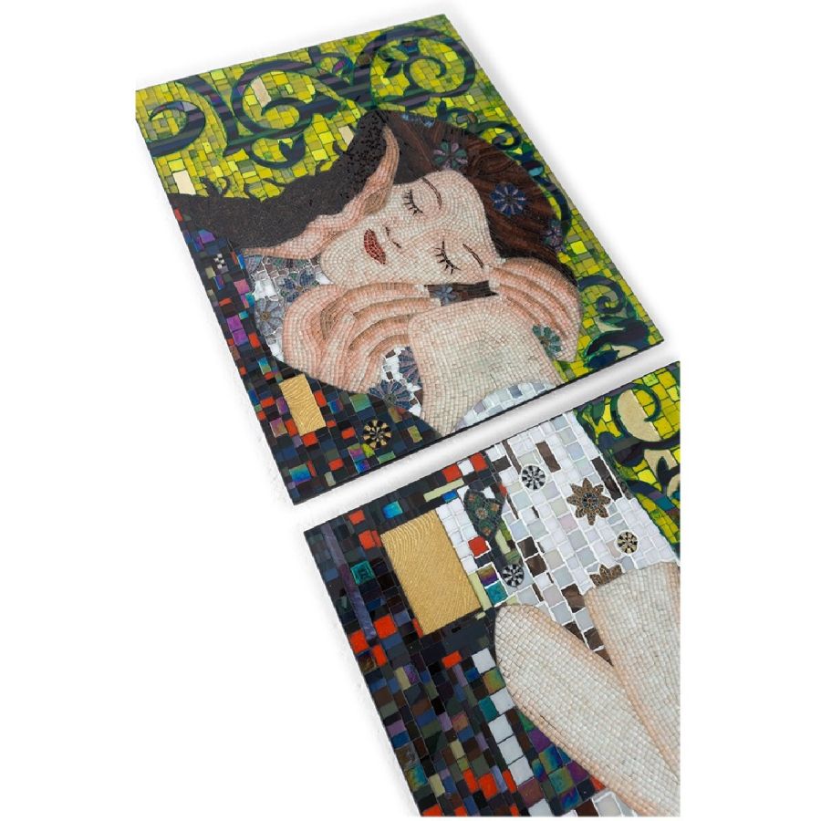 Modernism in the making, with over two thousand individually cut, hand-painted glass mosaic pieces and a dusting of semi-precious stones, this Klimt inspired piece is designed to appeal to the artistic senses and imagination.