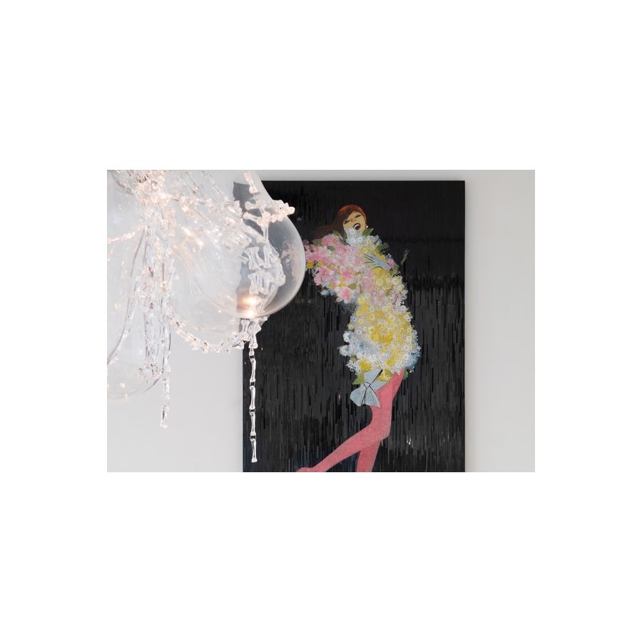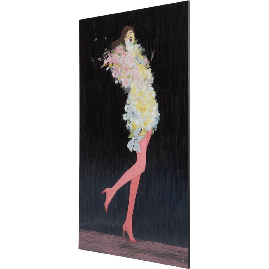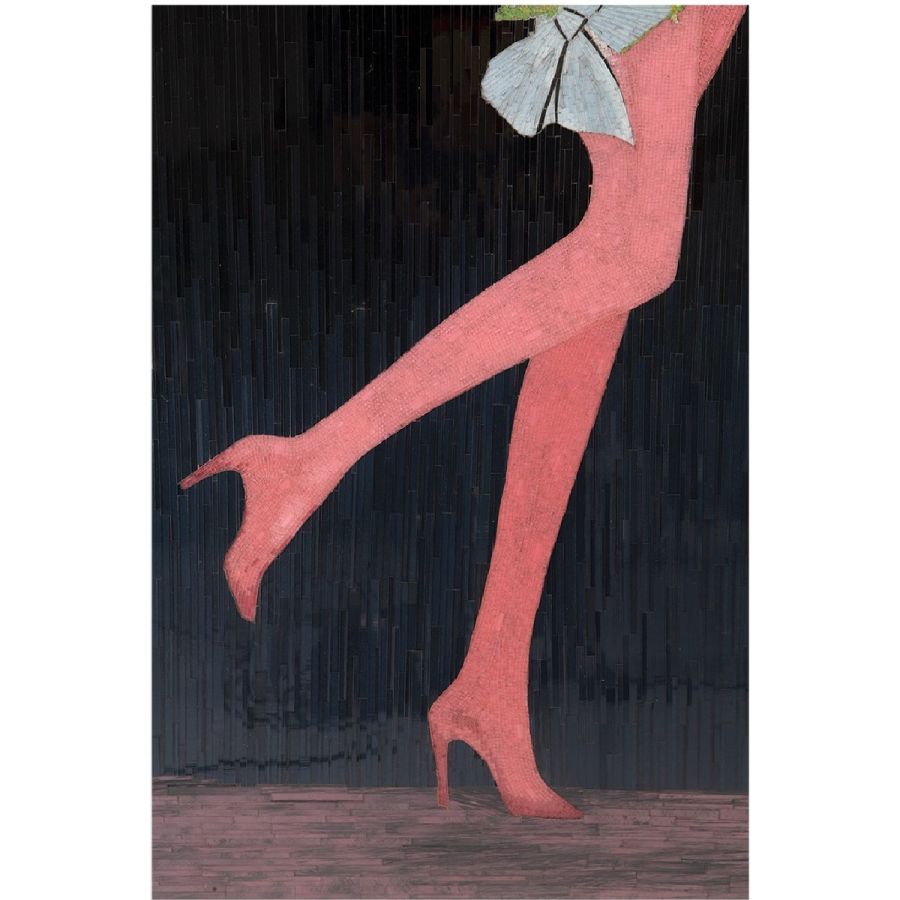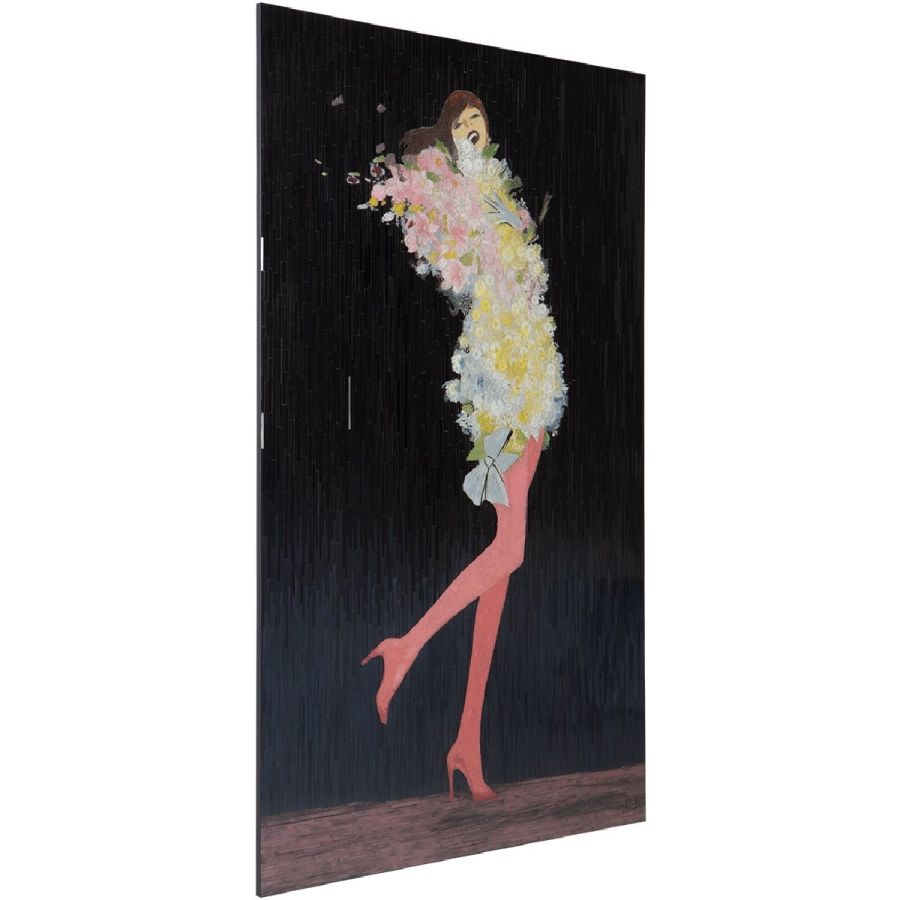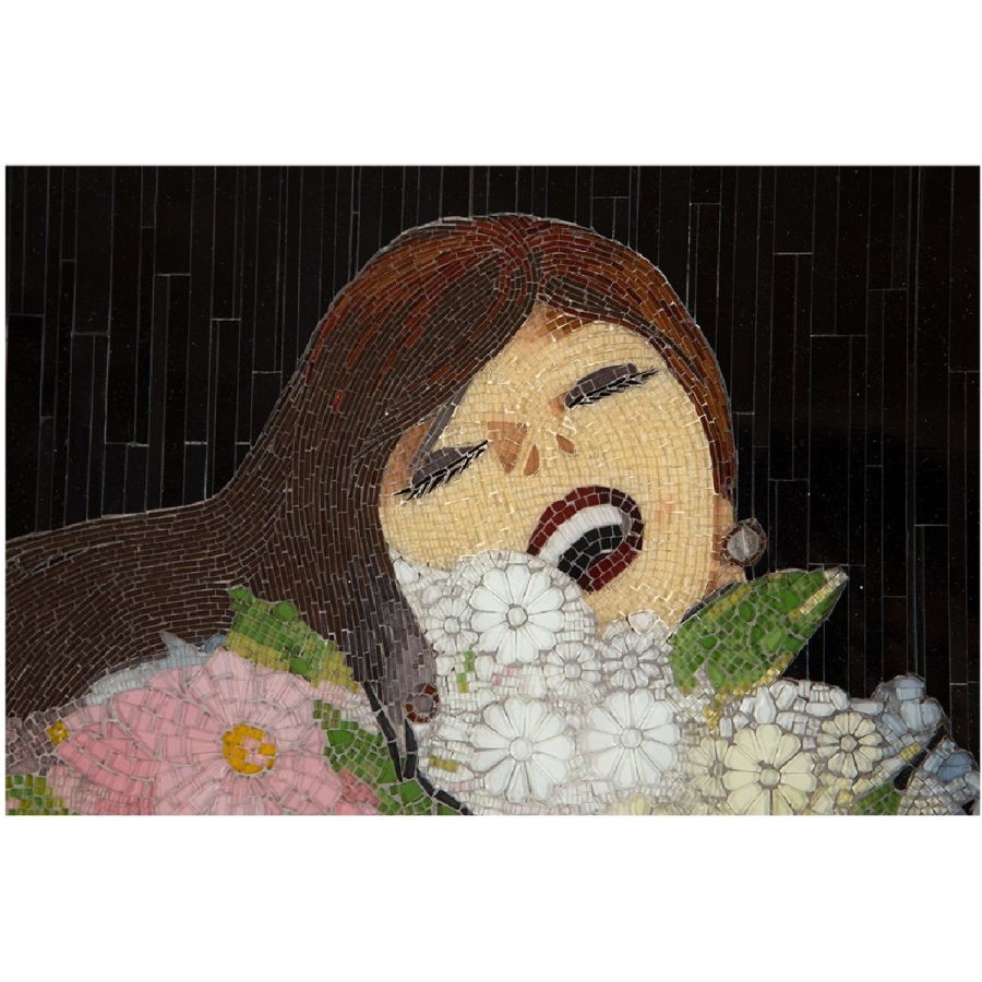 With a tilt of her head and kicking her heels, floating in a froth of tulle blossoms, the diva depicted in this simply fabulous mosaic is modeled after the Hollywood star Rita Hayworth. Made with over seventeen thousand hand-cut, hand-colored, and hand-placed tiny glass tiles, this is a truly exceptional piece of wall art that will bring delight for a lifetime.
