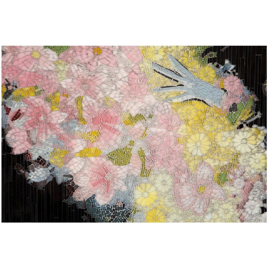 Wall mounted French cleat hanging system. Mosaic inlay of the highest quality, comprising of thousands of hand-cut and individually colored glass pieces.
