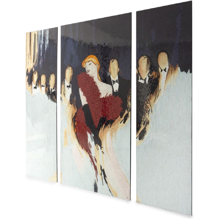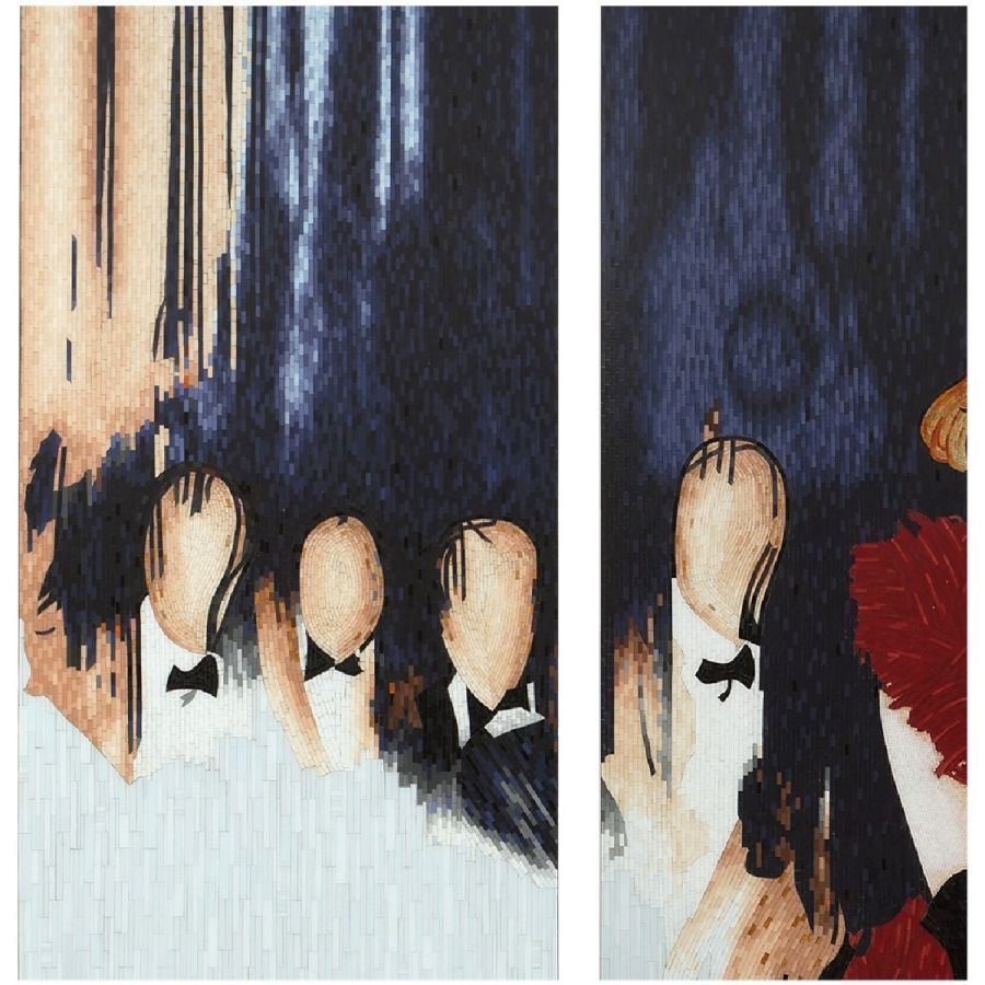 Imagine a jigsaw consisting of thousands of hand-crafted pieces, each cut to size, painted in its own unique shade of color ... that is the magnitude of the work and skill required to create these masterpieces which take over two months to complete. Christopher Guy's admiration for the female form can be seen throughout his work, and here he is paying homage to feminine sensuality through these Parisian dancers. The mosaics capture the gaiety, passion and energy of this great city's theatrical nightlife.