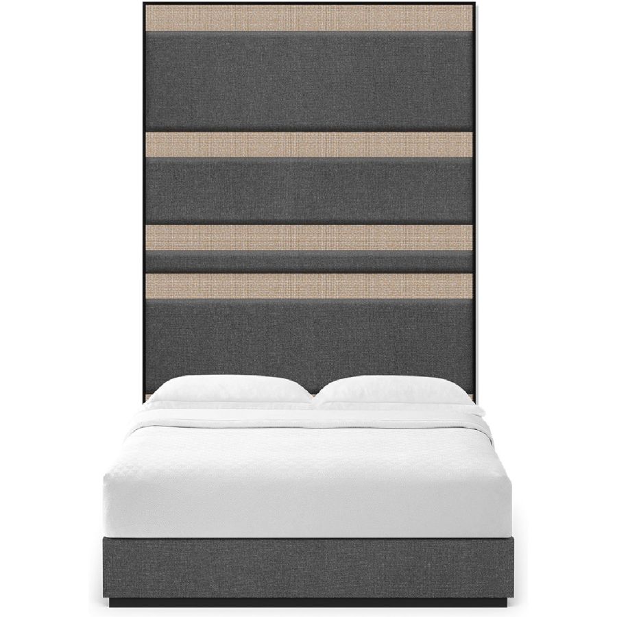 Named after the French conceptual artist, who uses stripes as a visual tool, this dramatic contemporary styled headboard alternates upholstered and rattan panels, and will make a striking impact in any bedroom setting. Also available in upholstered and mirror panels version (20-0778).