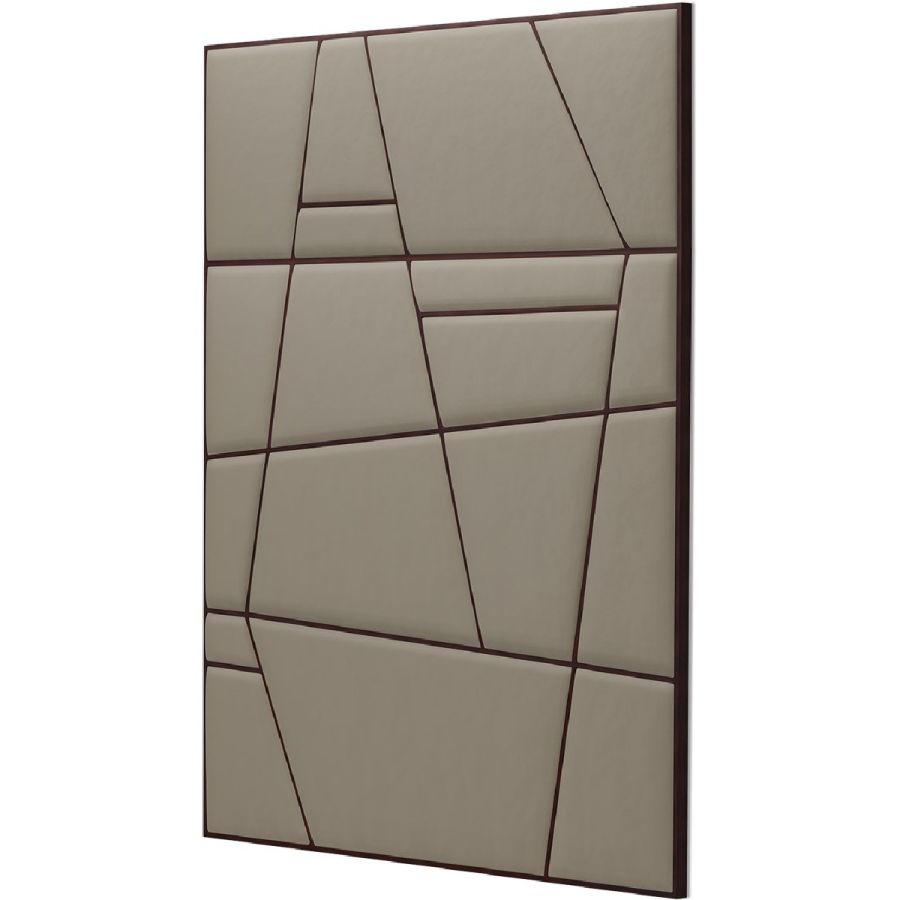 An elegant and hypnotic headboard, designed with 18 upholstered panes in irregular geometric shapes that fit into a tall rectangular panel suitable for all bed sizes. Also available in a 3-panel wide version (20-0791) and 6-panel version (20-0792).