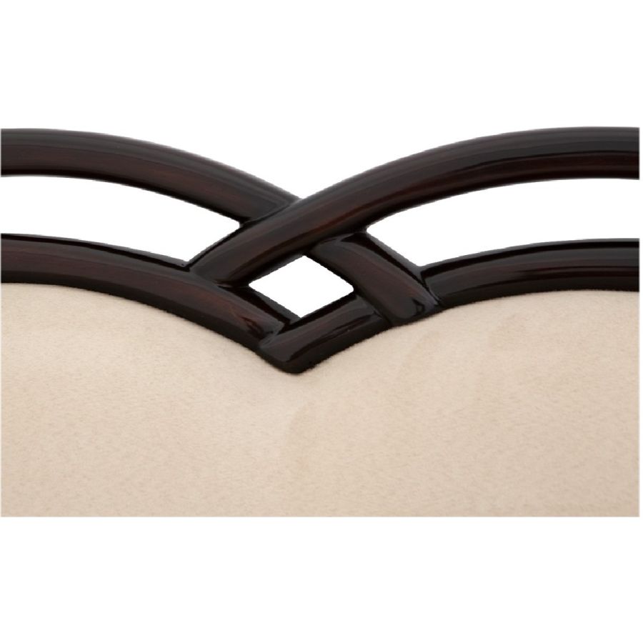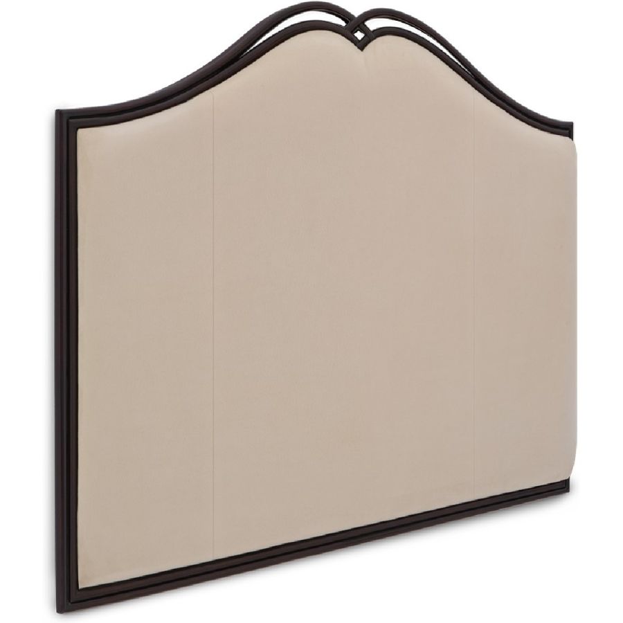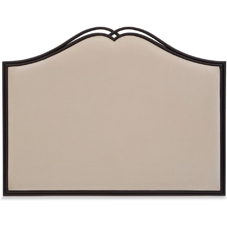 The double carved detail along the camel-backed shape of this extremely sophisticated headboard is the key ingredients creating its lovely grace and timeless style. Keyhole detailing and gently tufted upholstery make the prefect gorgeous statement here. BELLE!