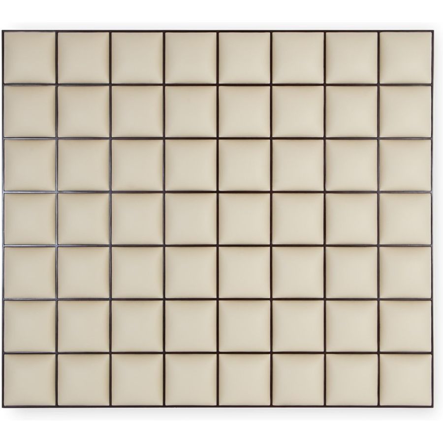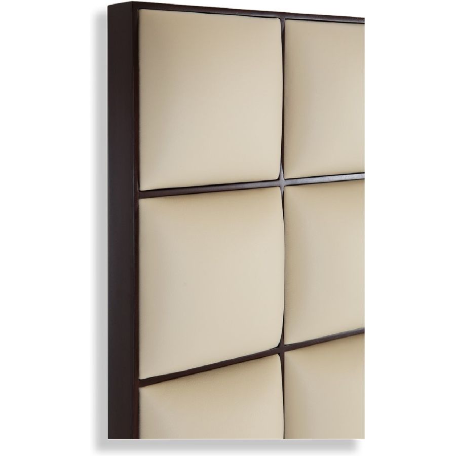 A stunning contemporary styled headboard composed of a grid of square panels, each framed with a fine wooden border reminiscent of a checkerboard. Size A features 56 blocks, while Size B features 70 blocks.