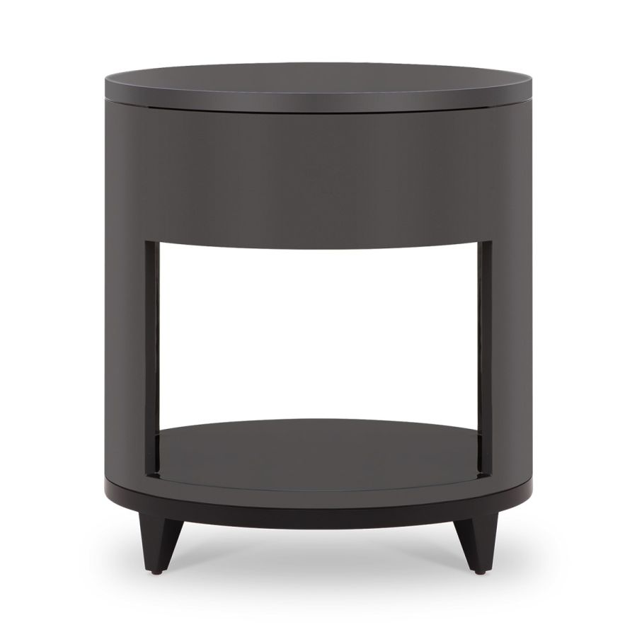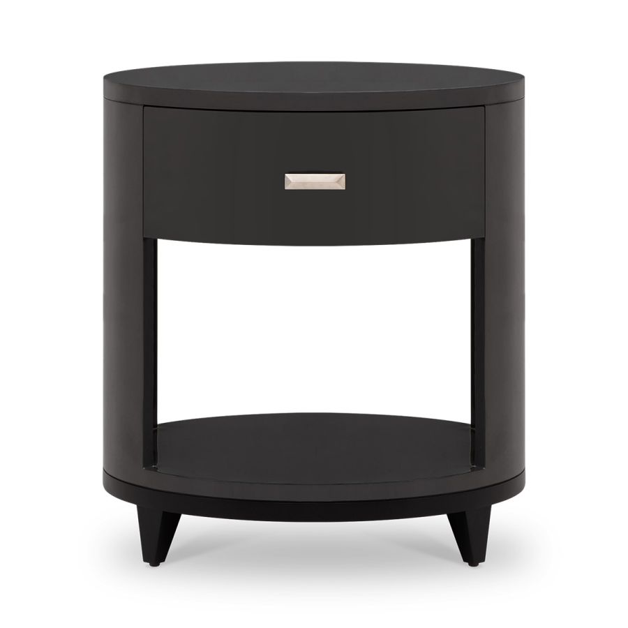 A charming oval nightstand, hand crafted in wood with a high open shelf topped by a practical drawer with metal handle. The ideal piece for any style of bedroom setting.