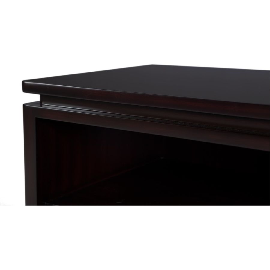 Certified Mahogany hardwood. Single ultra-suede lined drawer with easy glide. Selection of remarkable finishes are available. For residential use only. Commercial use is classified as Special Order Design (SOD), and alternative materials may be required. Contact us for details.