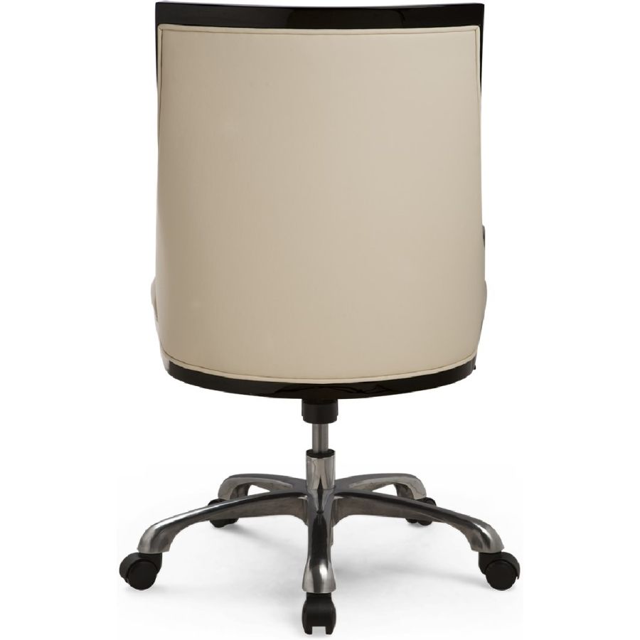 This fabulous tub-back home office chair is available with an aluminum or leather clad base. Adds elegance to any study.