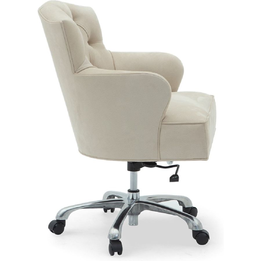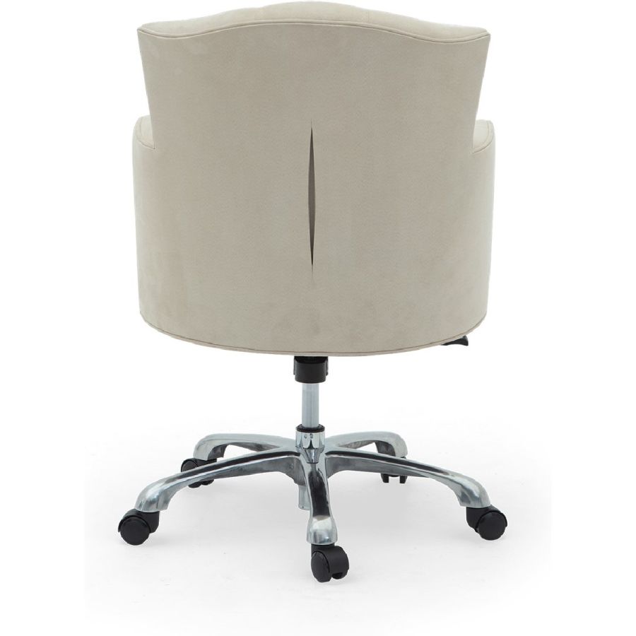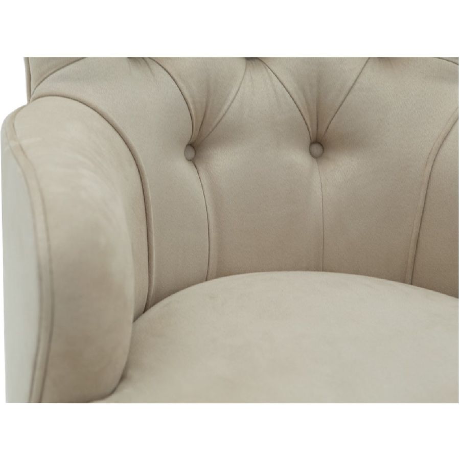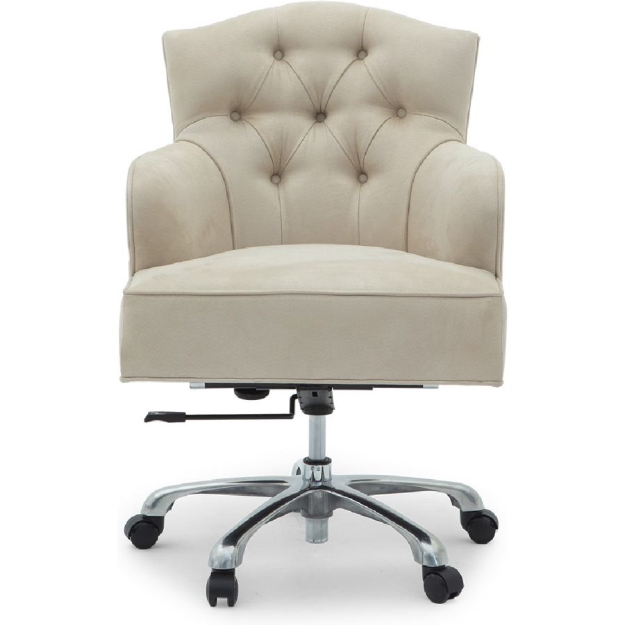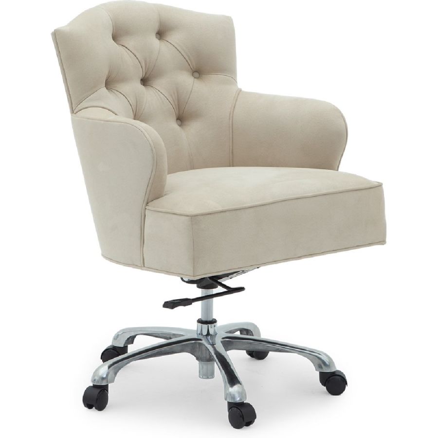Doweled mortise and tenon frame in solid Mahogany from certified source. Tight seat undersupport with high-density upholstery fill. Diamond shaped tufting in a buttoned formation. Swivel mechanism with height and tilt functions. For residential use only. Commercial use is classified as Special Order Design (SOD), and alternative materials may be required. Contact us for details.