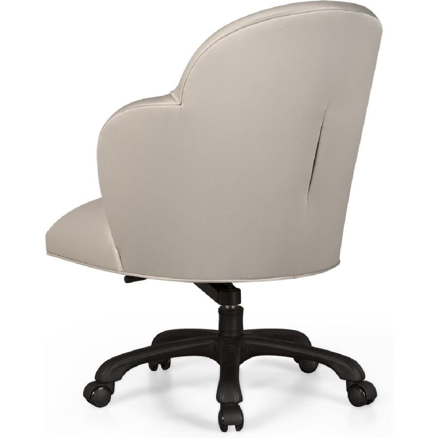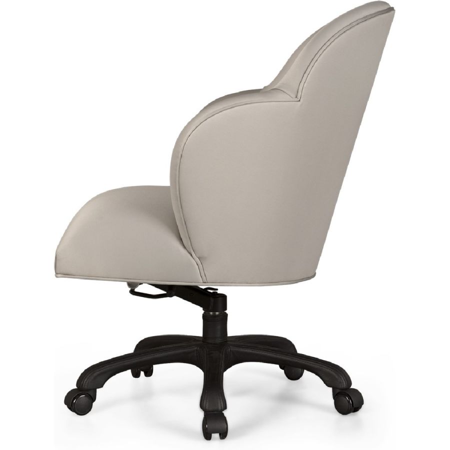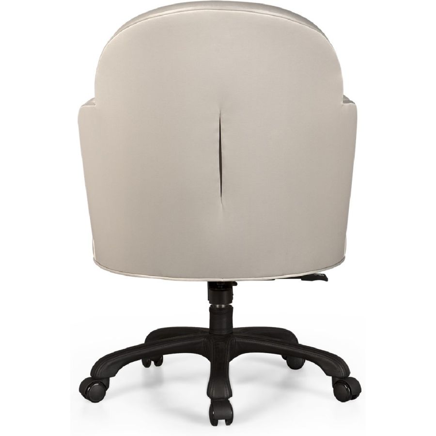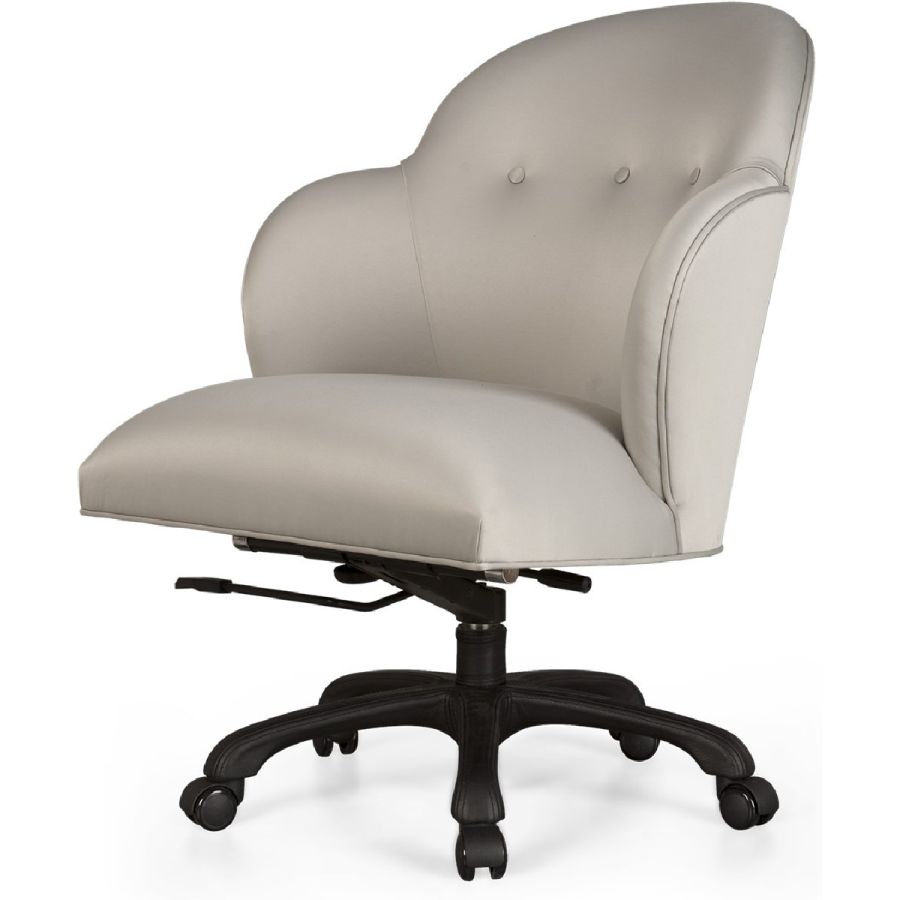 An elegant Art Moderne desk chair, subtly designed with high arms enclosing a tufted back-rest. The seat back is designed with the signature Christopher Guy Silk-cut at its rear. Office work will never be quite the same again.