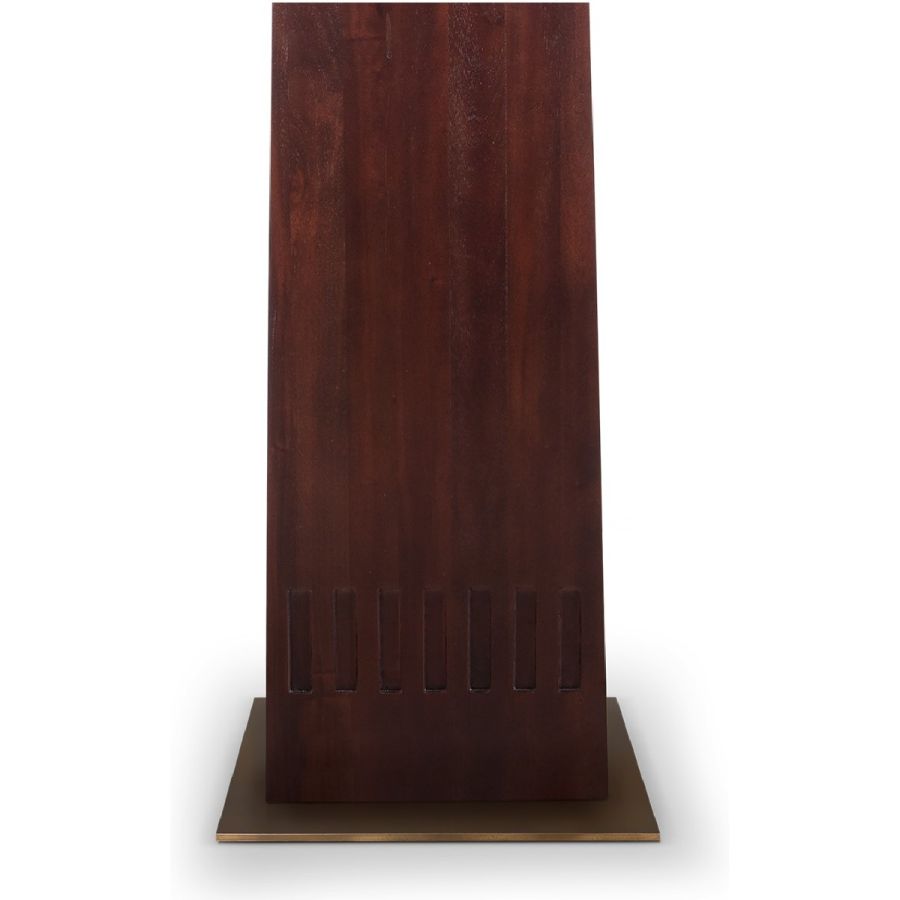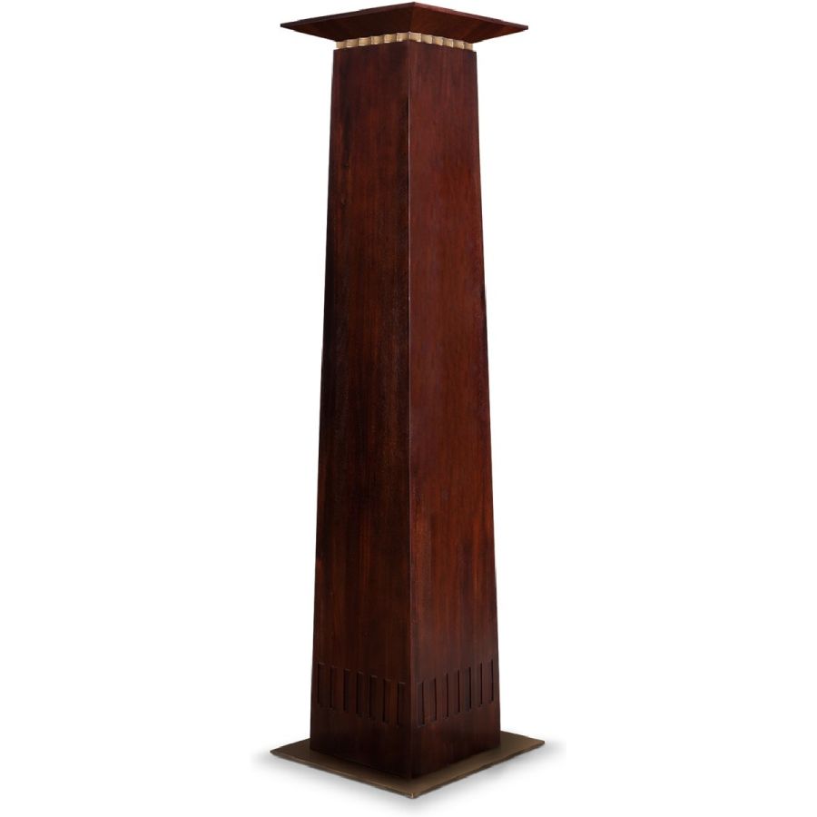 This statuesque wooden plinth with geometric hand carved detailing is perfect for displaying sculptures, plants or treasured objets.