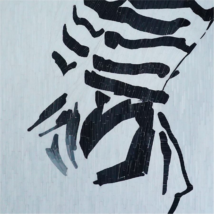 Wall mounted French cleat hanging system. Mosaic inlay of the highest quality, comprising of thousands of hand-cut and individually colored glass pieces.