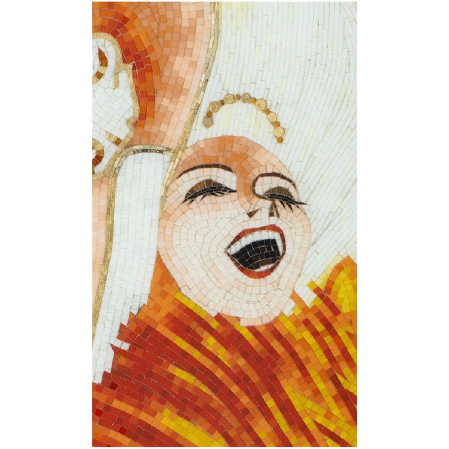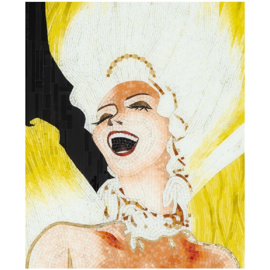 Wall mounted French cleat hanging system. Mosaic inlay of the highest quality, comprising of thousands of hand-cut and individually colored glass pieces.