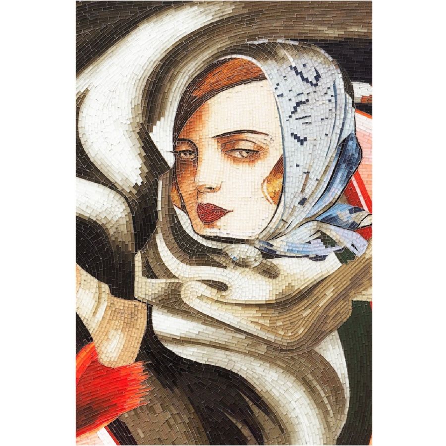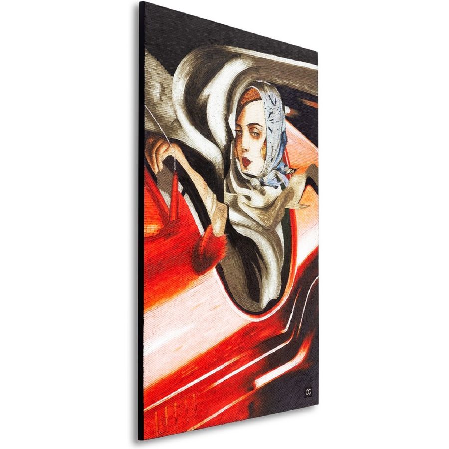 Taking inspiration from the Art Deco artist Tamara de Lempicka, this truly spectacular mosaic depicts the painter’s legendary Autoportrait at the wheel of a Bugatti racing car. Sparkling with the thousands of hand cut, hand colored glass tiles that make up the Christopher guy mosaic artworks, this is a piece to astonish and delight.