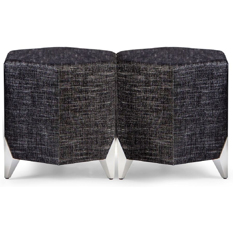These delightful stools feature a hexagonal upholstered seat on the signature CG diamond hand carved feet. Sold as a set of 2, they can be combined with further sets to make a longer or wider seat.