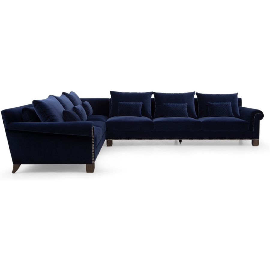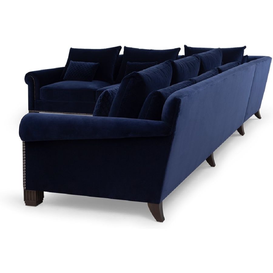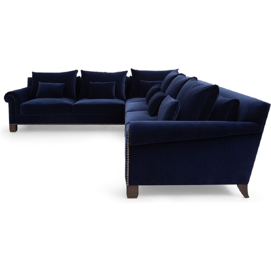 Inspired by the timeless sofa which formed the centerpiece of Coco Chanel's Paris apartment at 31 Rue Cambon, this sumptuous L-shaped sofa with a 3-seater sofa and incorporated left-facing extended chaise is part of a full range of sectional sofas and chairs. With studs enclosing the rounded arm, square stepped front feet and quilted cushions, it became the inspiration behind her famous 2.55 shoulder handbag.