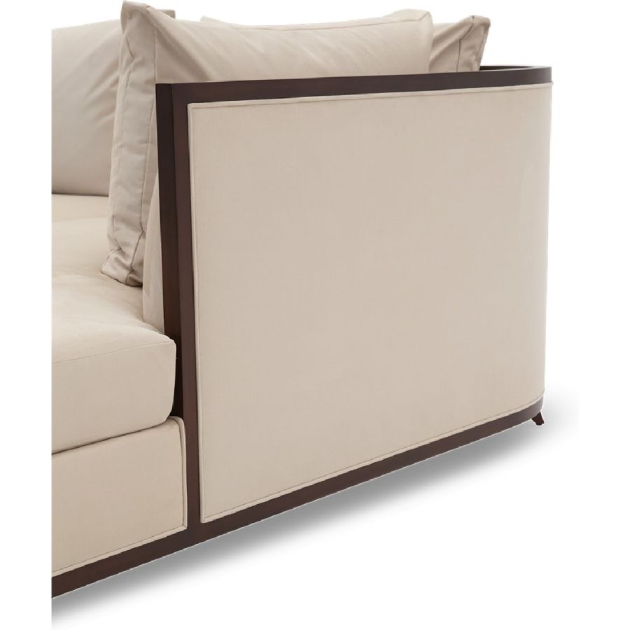 Doweled mortise and tenon frame in solid Mahogany from certified source. Hand-Carved details. Eight-way hand tied spring base, with pocket coil seat cushions encased in high-resilient fill and feathered down jacket. Feathered down throw pillows mixed with PolyFiber for added support. Available in a selection of finishes. Sectional knockdown for spaces with limited access. For residential use only. Commercial use is classified as Special Order Design (SOD), and alternative materials may be required. Contact us for details.