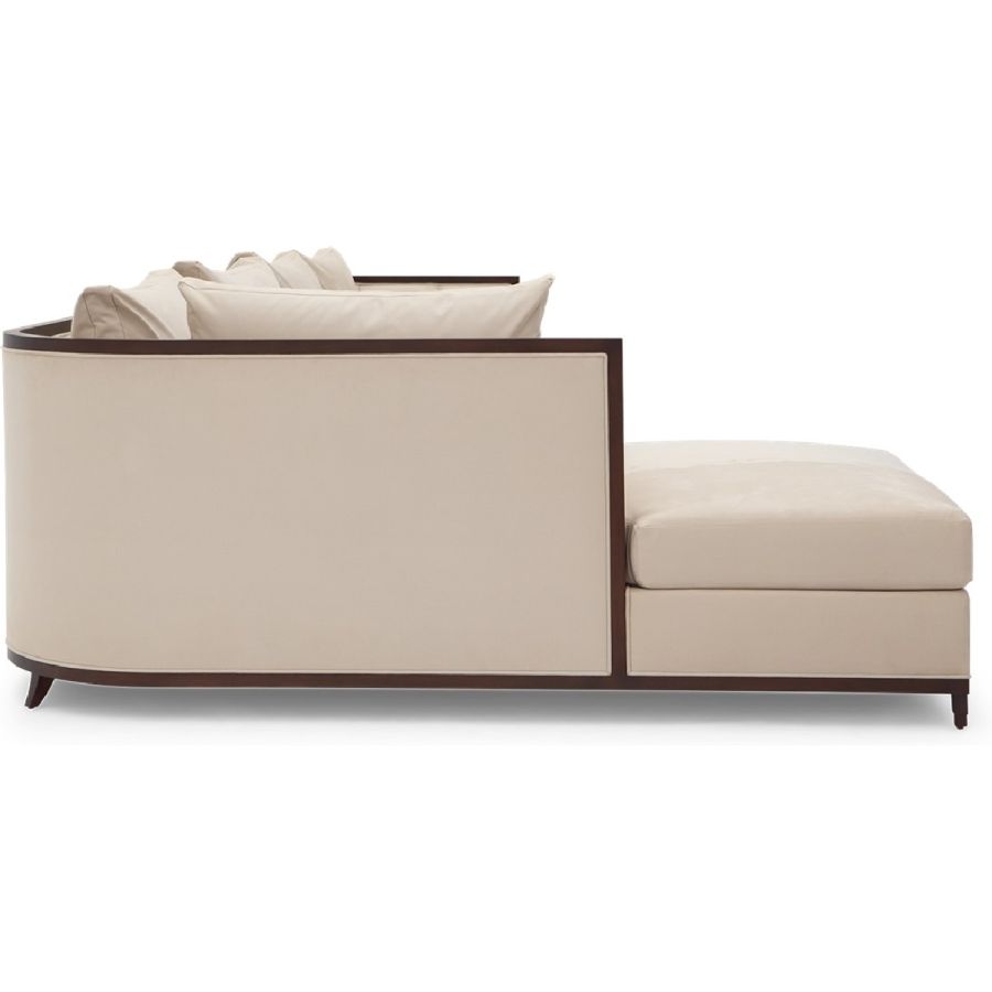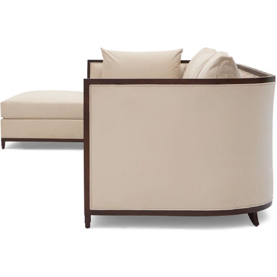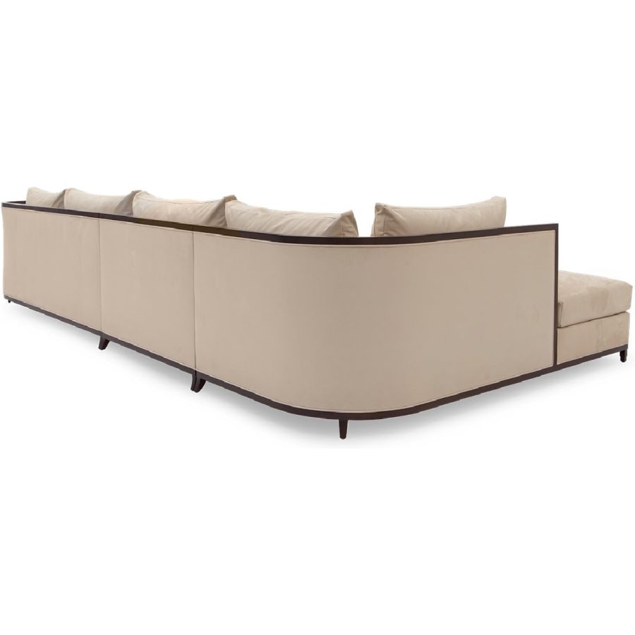 This elegant and practical sectional sofa is the perfect piece for positioning in a corner or as a centerpiece, with its curved back extending into a chaise on the right hand side. Also available in a right hand version 60-0508 and in right and left hand shorter versions, 60-0506 and 60-0507.