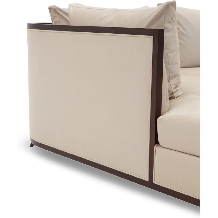 Doweled mortise and tenon frame in solid Mahogany from certified source. Hand-Carved details. Eight-way hand tied spring base, with pocket coil seat cushions encased in high-resilient fill and feathered down jacket. Feathered down throw pillows mixed with PolyFiber for added support. Available in a selection of finishes. Sectional knockdown for spaces with limited access. For residential use only. Commercial use is classified as Special Order Design (SOD), and alternative materials may be required. Contact us for details.