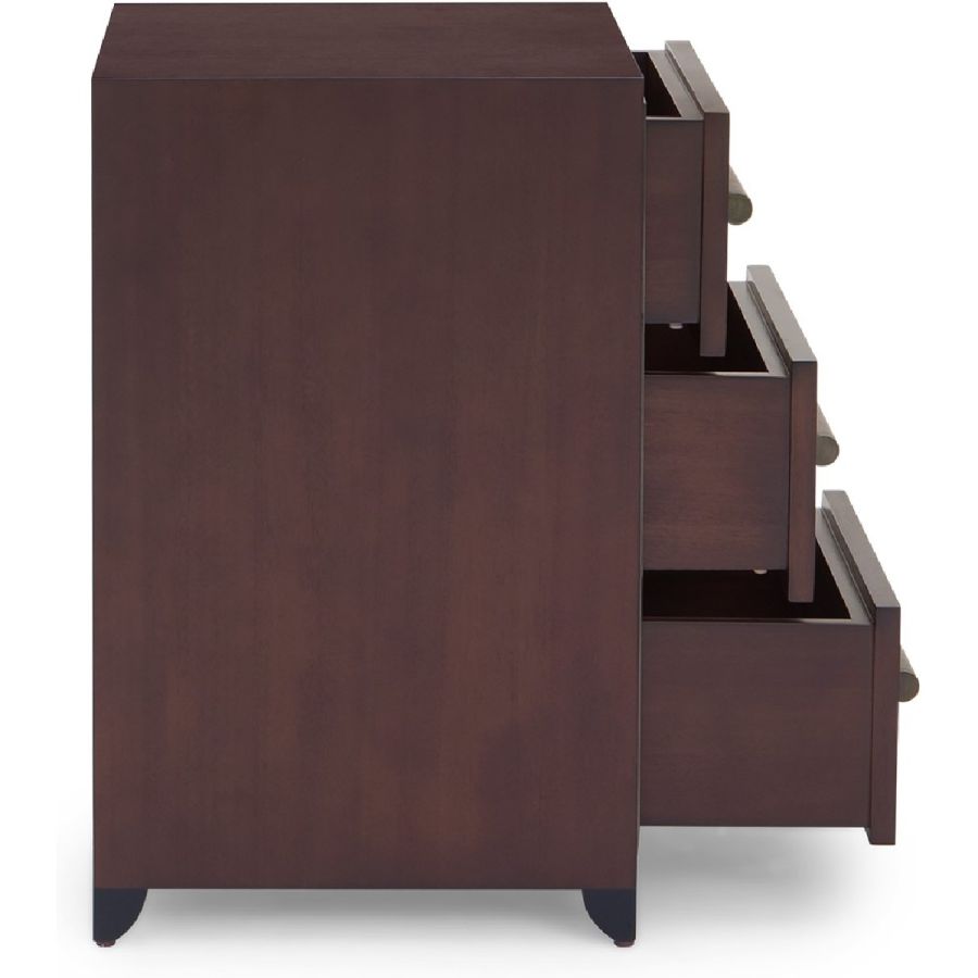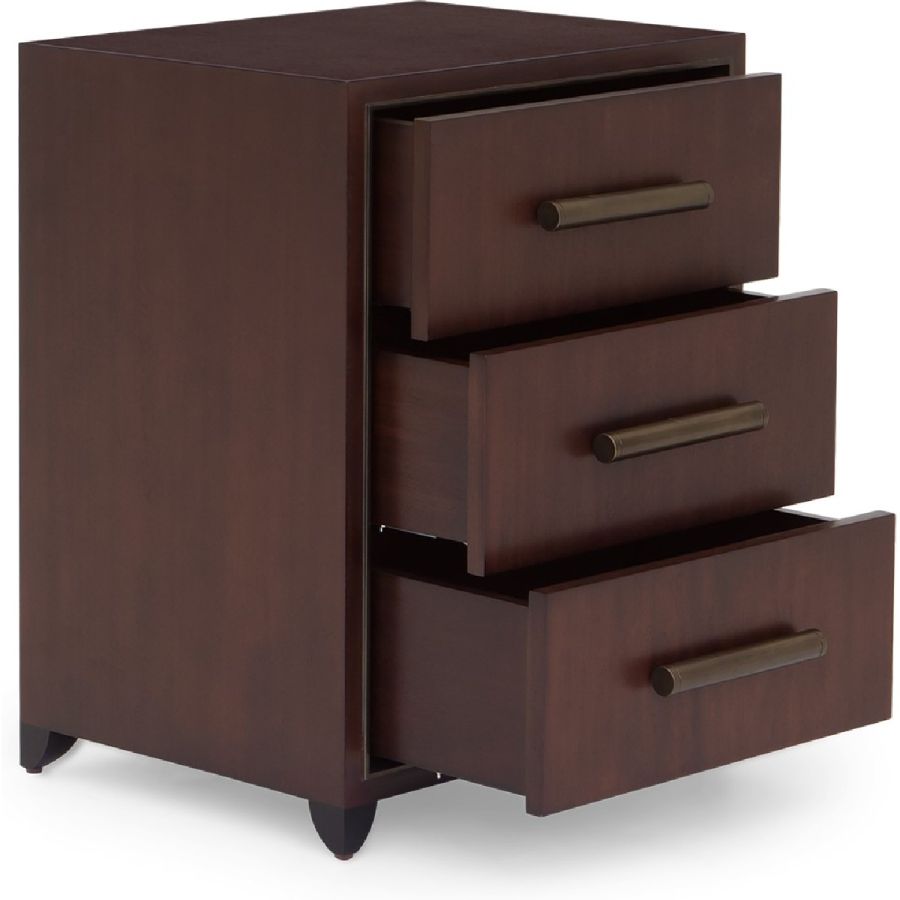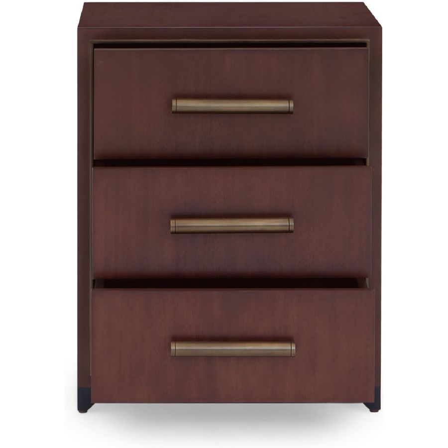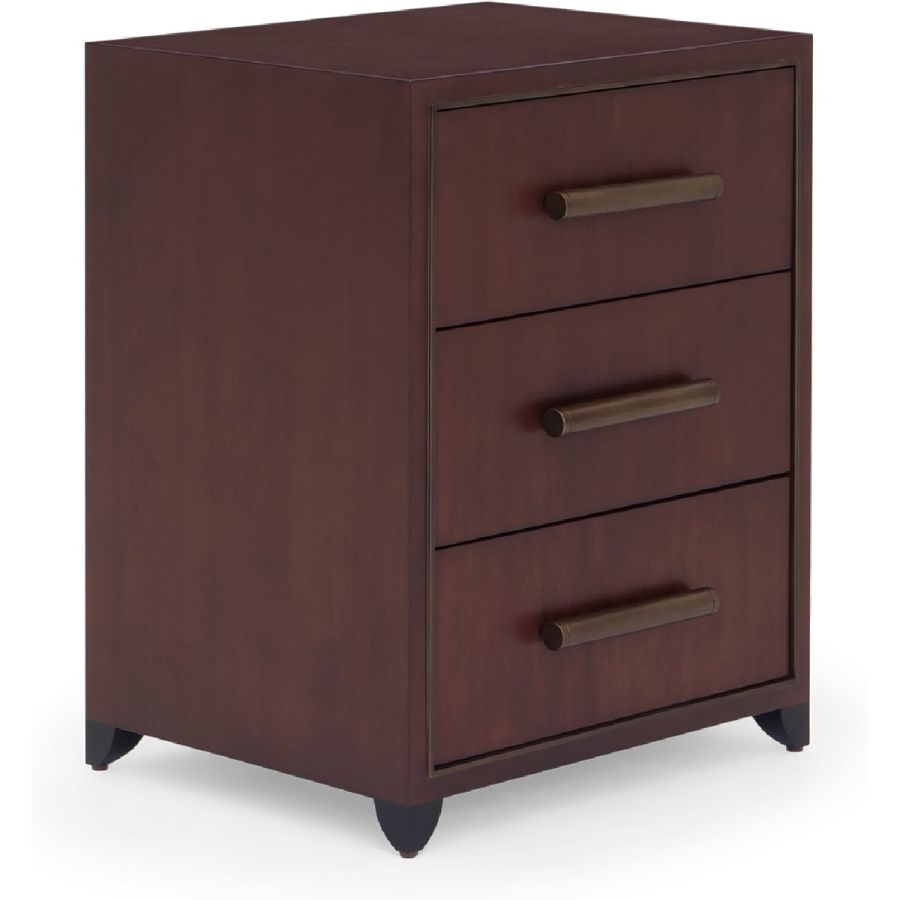 With an early 20th century Modernist influence, this understated side cabinet features 3 drawers with wooden handles in aged brass finishing. Also available as a larger chest 85-0045