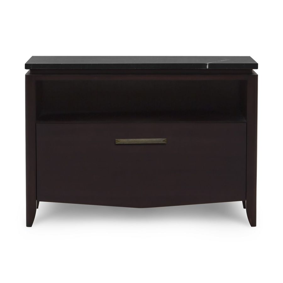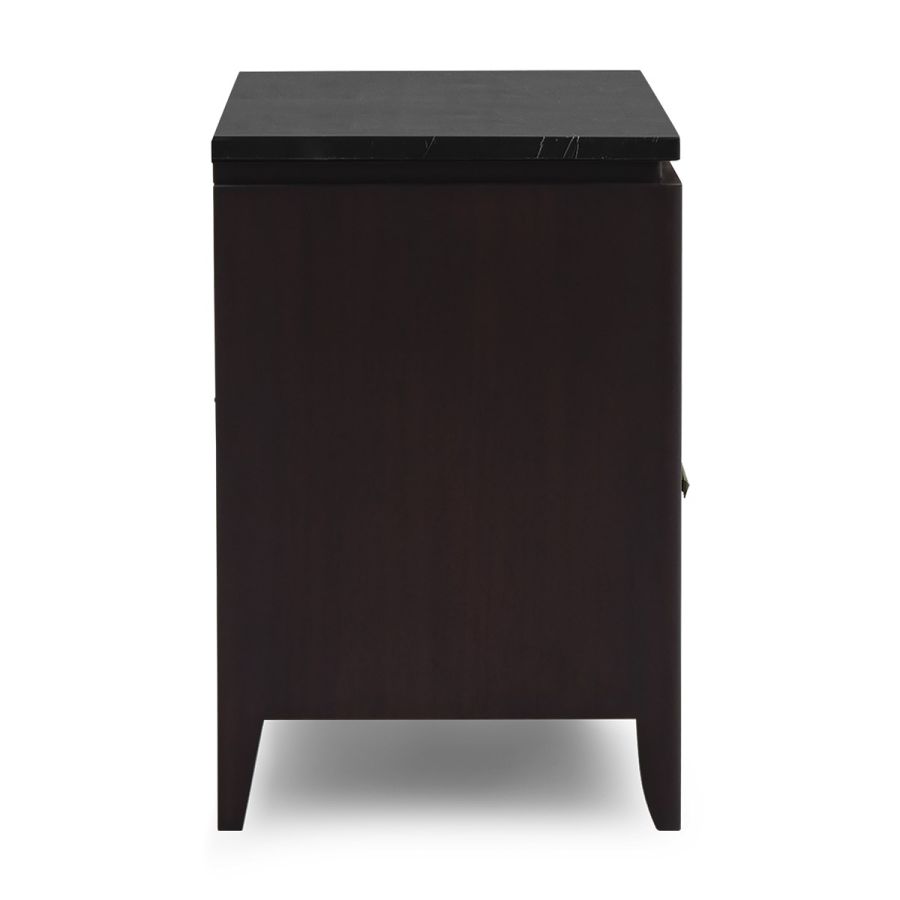 Practicality and stylishness are epitomized in this solid wood side table and chest with an open storage space and deep drawer. The addition of the Nero Marquina Marble top adds elegance to this must-have piece.